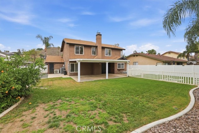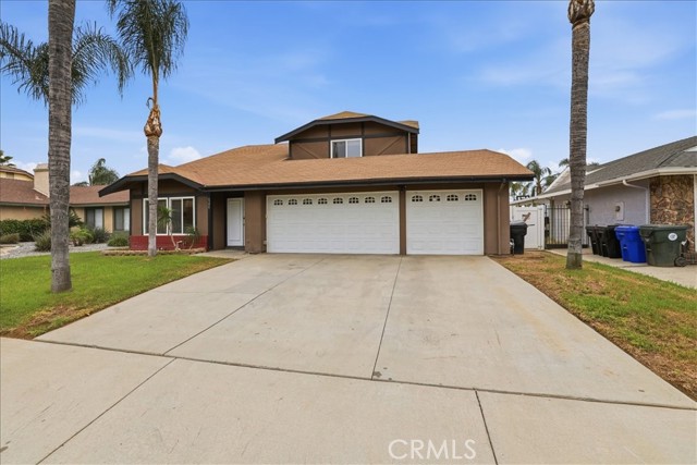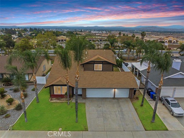 Beautifully updated and thoughtfully designed, this spacious 4-bedroom, 3-bathroom home offers a versatile and functional floor plan in a highly desirable location. Featuring a rare downstairs bedroom and full bathroom, it’s ideal for guests, multigenerational living, or a private home office setup. Upon entry, you’re welcomed by soaring vaulted ceilings and an abundance of natural light flowing through the formal living and dining areas, complemented by fresh interior paint and newer flooring throughout both the main level and upstairs. The layout seamlessly connects to the inviting family room, creating a comfortable space for everyday living and entertaining. The kitchen is both functional and stylish, featuring granite countertops, stainless steel appliances, rich cabinetry, ample storage, and generous counter space, all positioned to overlook the main living areas and backyard, making it perfect for both daily living and hosting. Upstairs, the primary suite offers a relaxing retreat with a walk-in closet and a beautifully updated bathroom complete with newer tile work, quartz countertops, upgraded fixtures, and modern finishes. Secondary bathrooms have also been tastefully updated with refreshed vanities, tile showers, and contemporary details, providing a cohesive feel throughout the home. Additional improvements include dual-pane windows throughout and an updated air conditioning system, enhancing comfort, efficiency, and year-round livability. Step outside to a spacious backyard designed for year-round enjoyment, featuring a custom covered patio with recessed lighting and an exterior ceiling fan—perfect for entertaining, dining, or relaxing. The yard offers plenty of room for gatherings, play, pets, or future customization such as a pool, garden, or outdoor kitchen. The three-car garage has been upgraded with fresh paint and a durable epoxy floor, offering a clean, finished space ideal for parking, storage, hobbies, or a home gym, along with an extended driveway providing additional parking and convenience. Conveniently located near Indian Hills Golf Course, parks, shopping centers, dining, and local schools, this move-in ready home combines space, thoughtful upgrades, functionality, and an excellent location into one exceptional opportunity you won’t want to miss.