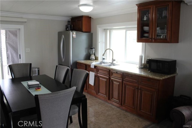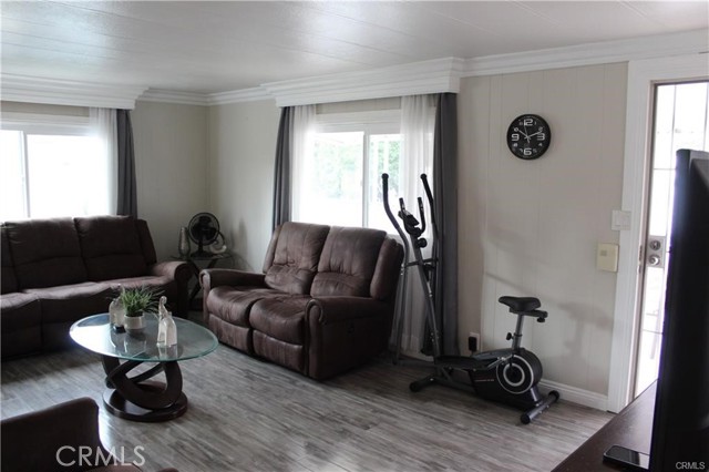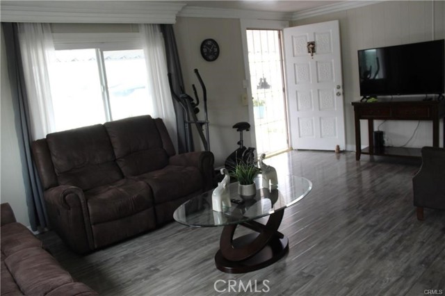 Nicest mobile home I've ever seen! This mobile home features 2 bedrooms 2 baths, newer kitchen cabinets with granite counters, stainless steel stove and sink, wood laminate flooring in the living room, bedrooms and hallway, crown molding throughout, updated bathrooms with tile flooring, newer double pane windows, new AC & heater system, 3 parking spaces, covered patio with 2 seating areas, outside laundry hookup area, interior and exterior paint is well maintained. Community features pool and spa, event center, workout room, car wash area and laundry area. This property has easy access to local stores, restaurants the 10 or 210 freeways and local schools are all close by.
