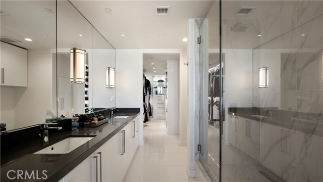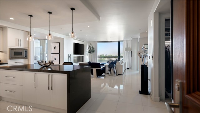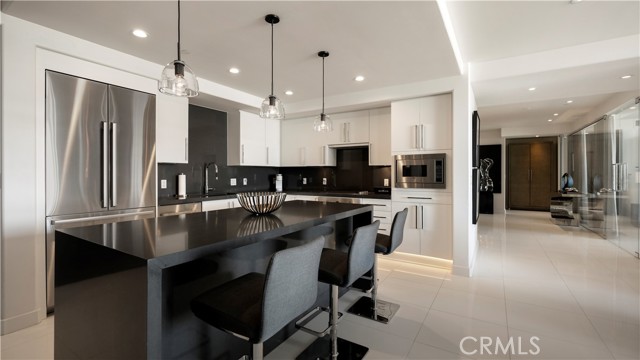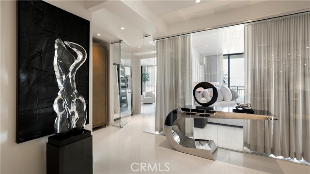 Welcome to 8085 Scholarship, a truly rare offering at The Plaza in Irvine. This extensively reimagined contemporary residence is the result of a tasteful combination of two units into one expansive, single level showpiece, creating a scale and layout seldom available in luxury high rise living. Fully gut renovated with a refined, contemporary design aesthetic, the home was rebuilt with meticulous detail. Brand new appliances, cabinetry, sinks, toilets, upgraded plumbing fixtures, and curated finishes throughout deliver a cohesive, designer environment that is completely turnkey. Clean architectural lines, beautiful white stone flooring, and walls of glass enhance the open concept layout, filling the residence with natural light while offering seamless flow for both elevated entertaining and comfortable daily living. The thoughtfully designed floor plan features two spacious primary suites, each serving as a private retreat with generous walk in closets and spa inspired baths appointed with premium materials and contemporary detailing. In addition, a dedicated office or primary retreat provides flexibility for remote work, a lounge, or fitness space. Two powder rooms add convenience for guests. A formal dining room introduces a sense of occasion, while a sophisticated bar area creates the perfect setting for hosting. The chef’s kitchen anchors the main living space with top tier appliances, sleek stone countertops, and a greatly sized island that serves as both focal point and gathering hub. Practical luxuries further distinguish this offering, including four side by side parking spaces, an exceptional rarity within The Plaza, along with two private storage units for added convenience. Residents enjoy resort caliber amenities including 24/7 concierge and security, a state of the art fitness center, resident lounge, conference facilities, billiards room, outdoor terraces, and a pool, spa, and steam room, all moments from premier dining, shopping, world class beaches, and John Wayne Airport. 8085 Scholarship presents a one of a kind opportunity to own one of the most distinctive and fully transformed residences within The Plaza.