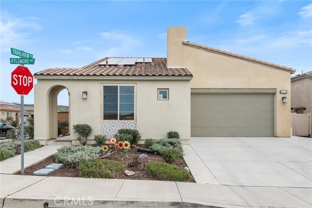 Welcome to this beautifully maintained 2-bedroom, 2-bathroom home in the highly sought-after 55+ community of Altis in Beaumont. Perfectly situated on a desirable corner lot, this home offers added privacy, abundant natural light, and fantastic curb appeal. Step inside to an inviting open floor plan designed for both comfort and entertaining. The spacious living and dining areas flow seamlessly into the modern kitchen, creating a bright and airy atmosphere ideal for gatherings with family and friends. Large windows frame beautiful mountain views while enhancing the home’s warm, welcoming feel. The thoughtfully designed layout includes two generously sized bedrooms and two full bathrooms, offering comfort and privacy for you and your guests. The primary suite provides a peaceful retreat with ample space and a well-appointed en-suite bath. Enjoy outdoor living at its finest under the Alumawood-covered patio—perfect for relaxing mornings, evening sunsets, or entertaining while taking in the stunning mountain backdrop. The solar system helps keep electric bills low, adding efficiency and long-term savings to this exceptional home. Living in Altis means enjoying resort-style amenities, scenic walking trails, and a vibrant, active lifestyle in one of Beaumont’s premier 55+ communities. This is more than a home—it’s a lifestyle opportunity you won’t want to miss.