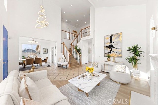 Welcome to this beautifully reimagined 2005-built residence showcasing dramatic 19-foot ceilings, abundant natural light, and refined contemporary finishes throughout. Upon entry, you are greeted by a soaring double-height living space enhanced by a striking designer chandelier that adds architectural elegance and visual impact. The home has undergone extensive interior upgrades, including fresh paint throughout, brand-new flooring, and a fully rebuilt staircase with clean, modern lines. The redesigned kitchen features sleek cabinetry, elegant surfaces, and premium brand-name appliances, including a high-quality range, dishwasher, and range hood—blending style and performance seamlessly. All three bathrooms have been completely renovated with modern finishes and updated fixtures, delivering a polished, sophisticated look. Additional improvements include dual-pane windows, a recently updated HVAC system, curated designer lighting, and energy-efficient LED fixtures throughout the home. Enjoy generous spacing between neighboring properties for enhanced privacy, along with a well-proportioned backyard ideal for relaxing or entertaining. The front yard has been newly refreshed with low-maintenance artificial turf, providing clean curb appeal year-round. A spacious three-car garage offers ample parking and storage. Situated in a well-maintained community with an exceptionally low HOA of only $115 per month—covering master structure insurance, water, common area electricity, and landscaping—this home combines luxury upgrades with outstanding value. Conveniently located near shopping, dining, schools, and major freeway access. A rare opportunity to own an extensively upgraded, high-ceiling residence in El Monte that truly feels like a model home.