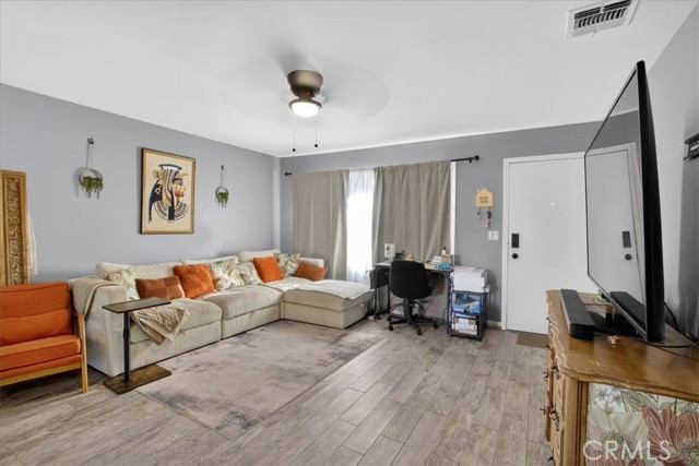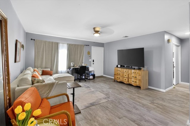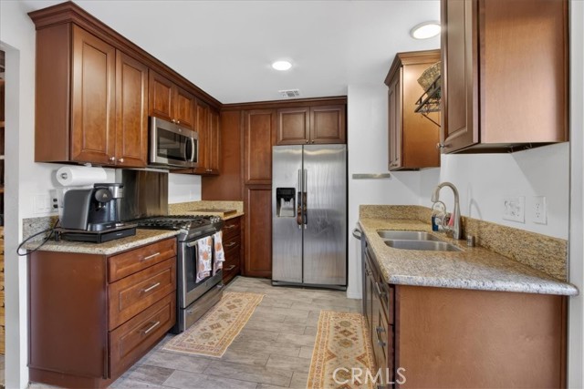 Great opportunity to own in a private, centrally located community near Buena Park Mall! This single-level attached PUD sits on a corner location and offers comfortable living with thoughtful upgrades throughout — a great option for buyers looking for an easy, move-in ready home. The layout is practical and inviting, featuring direct access from the oversized two-car garage into a private yard and patio with vinyl fencing — a nice space to relax, enjoy morning coffee, or spend time outdoors. The home has been recently remodeled with ceramic tile flooring throughout, updated kitchen cabinets with granite countertops, stainless steel appliances, refreshed bathrooms, and fresh interior paint. Dual-pane windows and two large sliding glass doors bring in plenty of natural light and open to the patio area. Central A/C and a ceiling fan help keep the home comfortable year-round. The community includes a gated pool and clubhouse, large greenbelt areas, and a public park with sports facilities right next door. Low monthly HOA dues cover roofing, exterior paint maintenance, landscaping, and community amenities. Convenient access to the 91 and 5 freeways makes commuting, shopping, and dining simple and accessible.