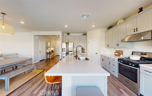 Paid-off solar — enjoy major savings from day one! Welcome to this beautifully upgraded newer home in the fast-growing and highly desirable Menifee community. Built in 2021, this spacious residence offers 4 bedrooms, 3 bathrooms, and approximately 2,461 square feet of well-designed living space. The open, light-filled floor plan flows seamlessly between the living, dining, and kitchen areas, creating a comfortable layout for everyday living and easy entertaining. Thoughtful upgrades include custom built-in cabinetry in the living room and professionally finished front and backyard landscaping that create inviting outdoor spaces to relax or host guests. Buyers will appreciate the valuable energy-efficient features, including fully paid-off solar, a paid electric wall system, and a paid ADT security system, delivering comfort, efficiency, and long-term savings. Residents enjoy low HOA dues with access to desirable community amenities such as pools, playgrounds, and an active clubhouse with regular neighborhood events. Conveniently located near parks, shopping, dining, and easy freeway access, this move-in ready home is an exceptional opportunity in one of Menifee’s most sought-after newer neighborhoods.
