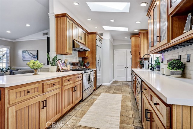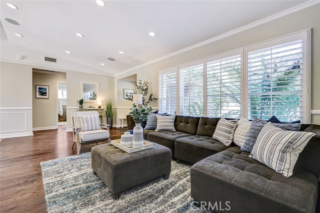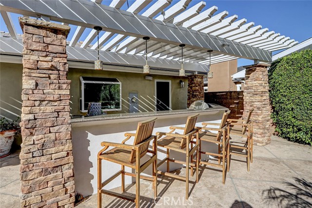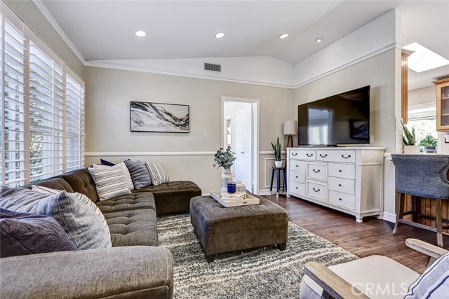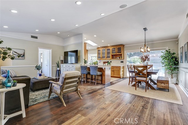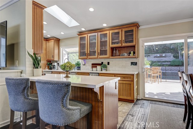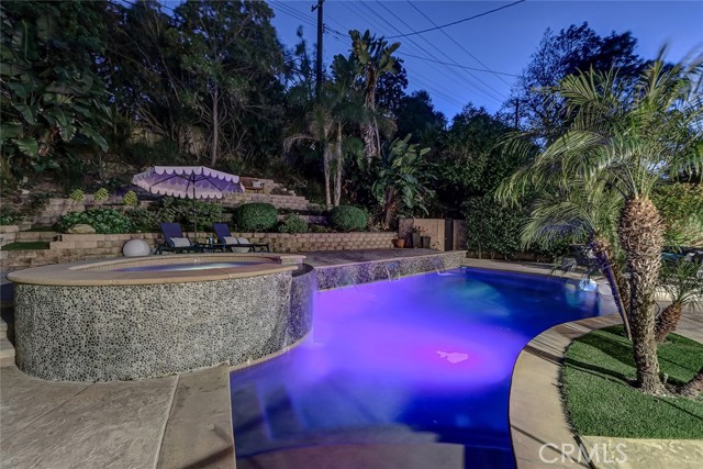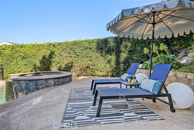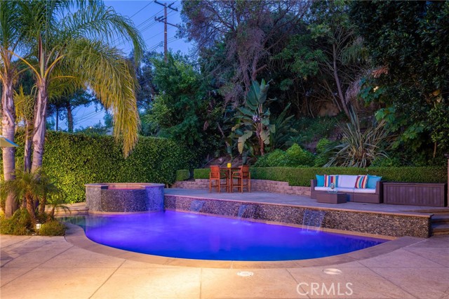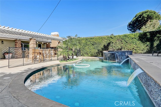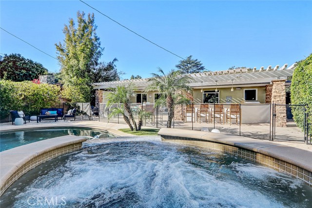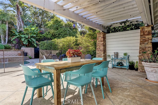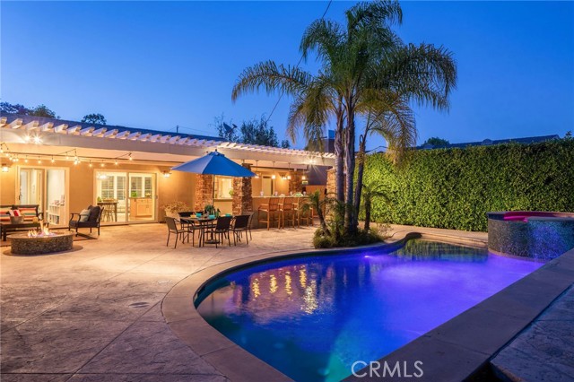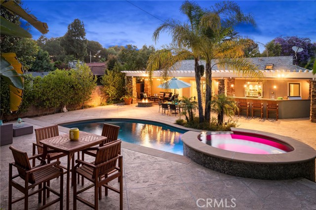 Your everyday resort in RPV! Make outdoor living part of your daily rhythm in this bright, easygoing home. The tropical backyard is the star: a large saltwater pool and spa wrapped in palms, with fruit trees offering peaches, pomegranates, oranges, lemons and limes. There are also multiple spots for lounging and dining, a built-in bar and grill and a firepit. Everything combines to create a setting that’s great for quiet mornings or splashy parties. Inside, the home opens up beautifully. Wide-plank French oak floors run through bright living spaces with high ceilings, skylights and a layout that keeps everyone connected. The updated kitchen features new quartz counters and a subway tile backsplash, along with plenty of prep space, stainless appliances and instant hot water. The dining area looks straight out to the pool, while the family room enjoys leafy views through large windows and plantation shutters. Two spacious bedrooms share a spa-style bath with a jetted tub and stone-tile shower. The third bedroom, a private suite, is filled with natural light. Practical improvements include remote skylights, surround sound, a tankless water heater, new HVAC (including A/C) and a long-lasting DaVinci roof. And the location is hard to beat: top-rated Silver Spur Elementary is mere steps away in this wonderful family neighborhood, with Peninsula High just minutes down the road.