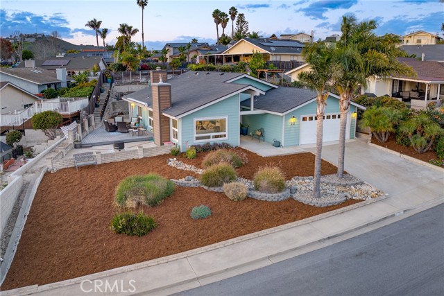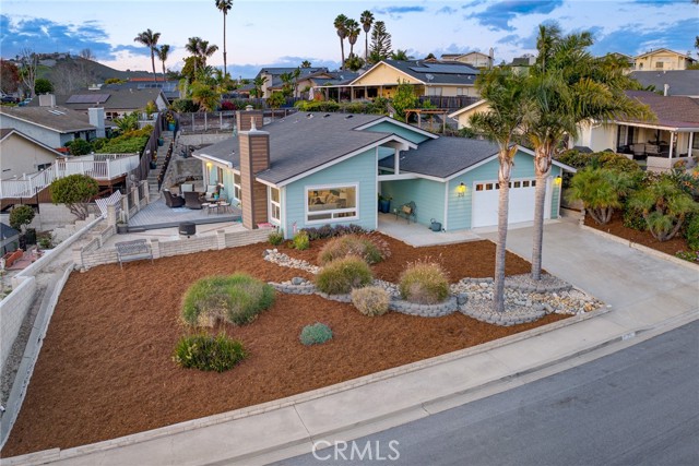 Experience panoramic white-water ocean views and the city light from this beautifully updated single-level home, perfectly perched on Highland Dr to capture the very best of Central Coast living. From the living room and kitchen, expansive coastal vistas create a stunning daily backdrop, while the oversized back deck offers the ideal space for entertaining, relaxing, and enjoying our mild year-round climate. This 4-bedroom, 2-bath residence offers approximately 1,812± sq ft of thoughtfully designed living space on a 7,500± sq ft lot. The private primary suite is tucked toward the rear of the home, providing a peaceful and quiet retreat away from the main living areas. Over the past seven years, the home has undergone extensive upgrades that enhance both comfort and style. Improvements include new windows, luxury vinyl plank flooring, recessed lighting, updated ceiling fans, and custom window shades. The living room fireplace has been transformed with a new gas insert, tile surround, and custom concrete mantel, while a second fireplace features a new gas log. The kitchen features stainless steel appliances, including a gas range, and both bathrooms have been fully remodeled with quartzite countertops and modern finishes. Additional interior enhancements include new baseboards, replaced bedroom doors, and a custom hall cabinet with quartzite countertop. Exterior improvements further elevate the home’s appeal, including new siding, fresh exterior paint, a new front door, security screen door, and a steel garage exit door. The front entry has been enhanced with new concrete and the removal of the entry column to create a more open, welcoming approach. The backyard is an entertainer’s delight, offering space for gatherings, outdoor dining, and enjoying the scenic surroundings. A two-car garage with built-in storage adds functionality and convenience. Additional features include air conditioning — a rare and valuable comfort feature in this coastal area — and a shaded outdoor patio cover, allowing for year-round enjoyment of the outdoor living space. Single-level homes with ocean views are highly desirable and rarely available in this area — making this a unique opportunity to own a thoughtfully upgraded coastal retreat. Make sure to stop by Highland Park, a 7 acre park which includes picnic areas and children’s play equipment. Just a short distance up from this property! A hidden gem and fun for all!