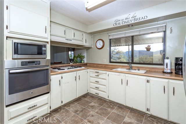 Prime opportunity to jump into a great 2 Bedroom 2 Bath on a corner lot in Kelly Ridge! This home comes with a detached 2 car garage, new roof, RV Parking with Hook-ups, and OWNED SOLAR. This home has incredible views and a massive deck that almost runs the length of the home. Imagine sitting on the deck overlooking the views with a cup of coffee or tea or hot coco! Kitchen has refrigerator, dishwasher, a pass-through breakfast bar, and large pantry. The dining room features built-in cabinetry, is open to the living room (great for entertaining) and a slider to the deck. Master bedroom is large, with an en-suite bath. Second bedroom is located next to a second bathroom, so your guests have access to a private bathroom. This home is light and airy, and show's well. The 2-car garage has plenty of workspace and storage. The entire property is well landscaped.