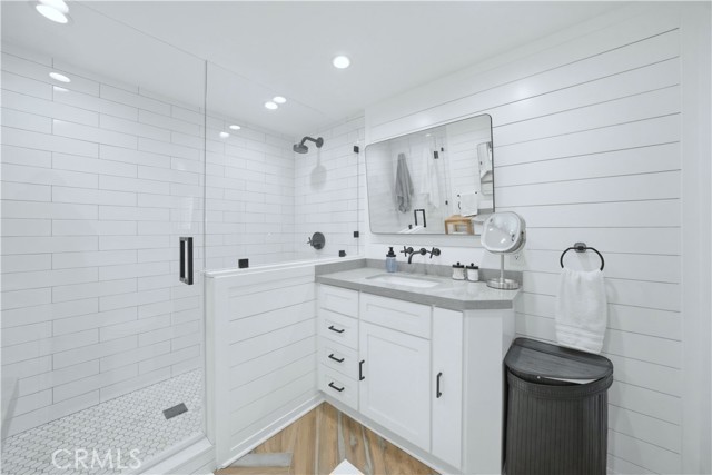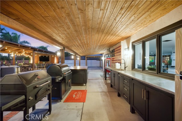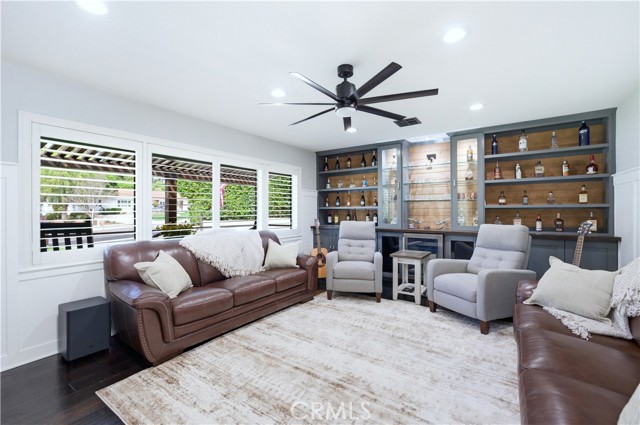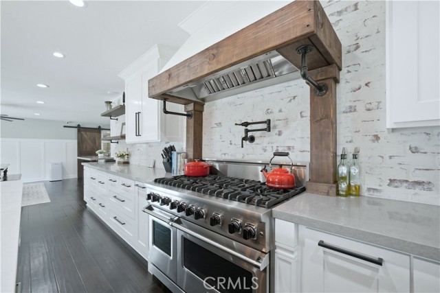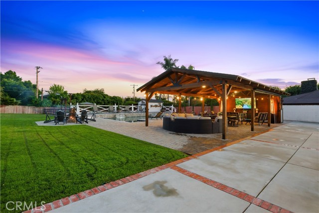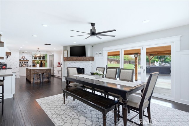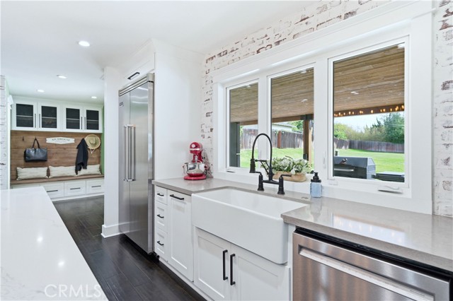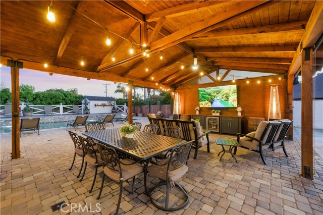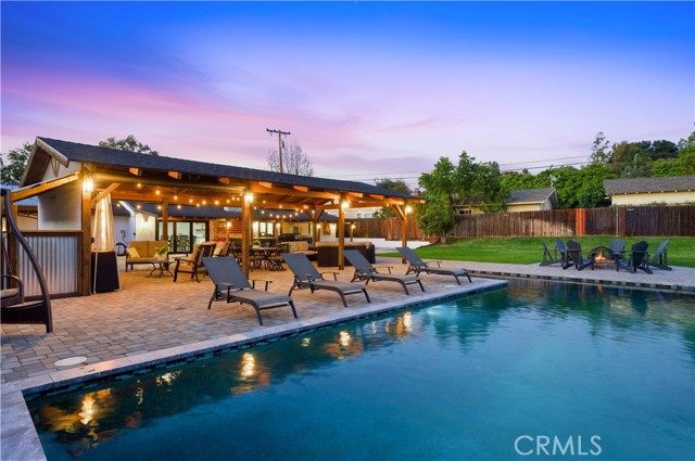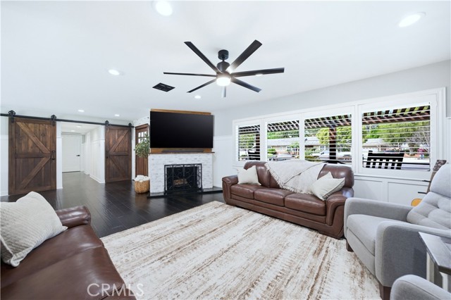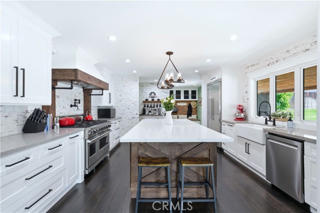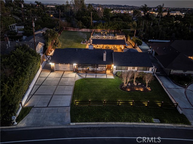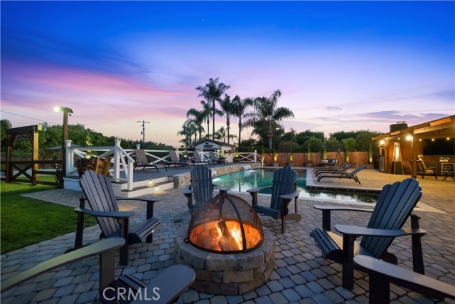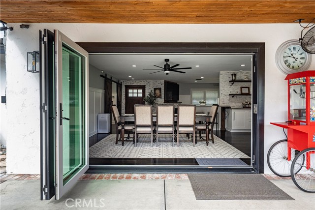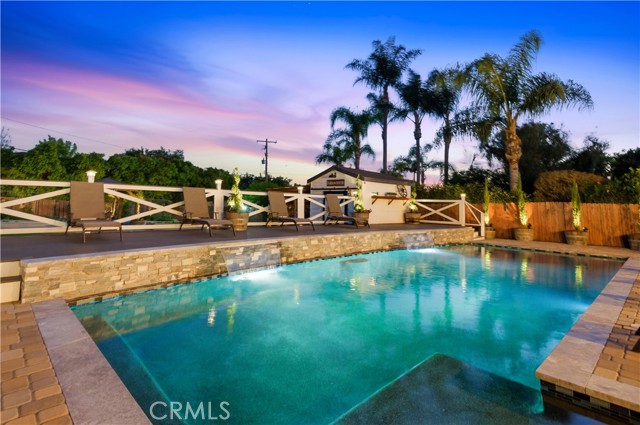Stunning fully remodeled Friendly Hills home showcasing exceptional farmhouse curb appeal, resort-style backyard living, and an expansive lot of approximately 25,079 sq ft. This beautifully upgraded residence offers approximately 2,000 sq ft of living space with 3 bedrooms and 4 bathrooms, featuring an open-concept floor plan designed for modern living and seamless indoor-outdoor entertaining. The main living area features a fireplace, custom built-in shelving, and wainscoting throughout. Hallway privacy barn doors enhance functionality, and a split barn door in the kitchen adds distinctive farmhouse appeal. The custom farmhouse-style kitchen offers custom cabinetry with abundant storage, custom travertine countertops, a spacious island, and Viking stove, hood, and refrigerator. The kitchen opens to the main living areas and an oversized dining area, accommodating a dining table approximately 10 feet in length. Panoramic custom 9’10” tri-fold door enhance natural light and backyard views. The private backyard offers a true outdoor retreat, featuring an upgraded resort-style pool with PebbleTec finish, waterfalls, custom lighting, new hardscape, elevated deck areas, and a Baja shelf (tanning ledge) ideal for in-water lounging. The pool is designed with 4-foot depths on both ends and a 6-foot center section. The backyard patio is finished with pavers for a refined entertaining space. Designed for entertaining, the detached covered patio (approx. 684 sq ft) includes ceiling fans, built-in lighting, outdoor roller shades, and a designated wall for mounting entertainment equipment and a TV, creating a seamless indoor-outdoor experience. The grounds include mature fruit trees and garden areas, including combo apple trees (Anna, Fuji, Gordon, and Dorsett varieties), peach, guava, pear, pomegranate, apricot, and plum trees, along with eight large vegetable/fruit beds. Additional features include a 2-car garage, spacious yard with abundant possibilities, and location in the desirable Friendly Hills community within the La Serna High School district (buyer to verify). Major upgrades include an extensive interior remodel of all rooms and bathrooms approximately 3 years ago; HVAC replaced approximately 3 years ago; plumbing approximately 80% copper with newer plastic piping primarily in bathrooms; roof with newest shingle layer installed approximately 15 years ago and a fully owned solar system with approximately 30 panels installed approximately 12 years ago.