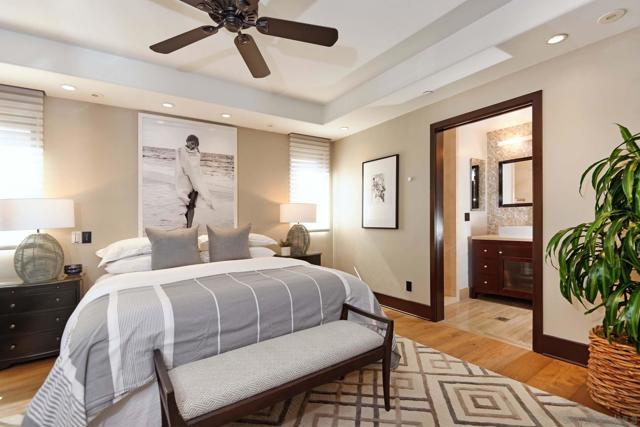 Commanding a premier oceanfront position in the heart of La Jolla Village, this penthouse offers sweeping Pacific Ocean views and the constant rhythm of waves just steps from the shoreline. Perfectly situated along one of La Jolla’s most coveted stretches of coastline, the residence delivers a rare combination of privacy, refined construction, and effortless beachside living in the very center of the Village. A standout feature—almost unheard of for oceanfront property in the Village—is the private gated garage with parking for five vehicles, providing exceptional convenience and security rarely found this close to the sand. The residence lives beautifully on a single level with no interior stairs, accessed by a private elevator. Expansive pocketing glass doors open the main living area to a generous ocean-facing terrace with a fireplace, creating seamless indoor-outdoor living and front-row sunset views over the Pacific. The thoughtfully designed floor plan includes three bedroom suites with ensuite baths, a powder room, and a dedicated office with custom built-ins and solid wood pocket doors that can serve as a fourth sleeping area. The primary suite features dual bathrooms for added space and privacy. Multiple fireplaces and quality finishes enhance comfort throughout. Located within the **exclusive Miramare building - comprised of only three residences - the property offers gated entry, privacy, and an irreplaceable oceanfront setting just moments from La Jolla’s renowned dining, shops, galleries, and beaches.