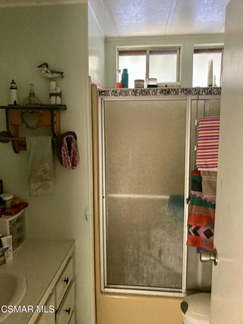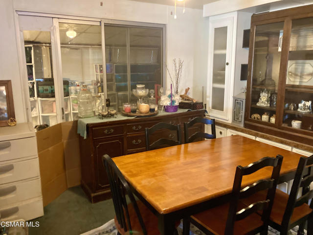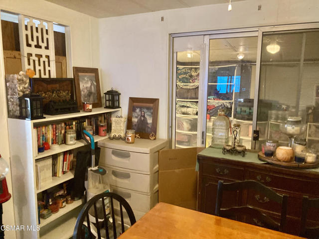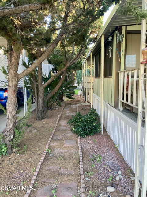 located in a very desirable park, Villa Del Arroyo M H Park. Home shows very cluttered however good potential. Huge private yard with large side yard. Tandon parking for up to 3 vehicles. Kitchen with built-in table , lots of cabinets, overhead lighting, formal dining room with built-in hutch with overhead light/fan. Living room with den, enclosed porch leads to outside. Two bedrooms & baths, oversized laundry room. Park has basketball & pickleball, tennis courts, pool/spa, clubhouse with kitchen, library, game room, etc. walking trails, community gardens. A+ Park.