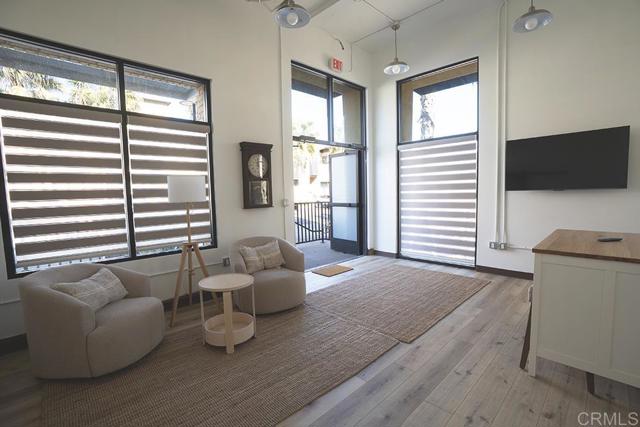 Rare live/work condo offering flexible residential and retail use in a prime location. This unique 1-bedroom, 1.5-bath unit features approximately 700 sq ft with dramatic 15-foot ceilings and a striking modern industrial storefront design. Interior finishes include luxury plank flooring, designer Bali zebra shades, shaker cabinetry, and quartz countertops. The kitchen is equipped with all new Samsung stainless steel electric appliances, including a counter-depth French door refrigerator, slide-in range/oven, and advanced microwave. In-unit washer and dryer included. Building features include fire sprinklers and a central alarm system.Two exclusive parking spaces convey. Community amenities include pool, spa, BBQ area, and outdoor patios. Ideally situated within walking distance to parks, restaurants, and major shopping including Walmart, Target, and over 100 additional retailers. Directly adjacent to the San Luis Rey River and approximately one mile to the Camp Pendleton San Luis Rey gate. A rare opportunity for those seeking flexibility, functionality, and modern design in one space.