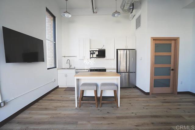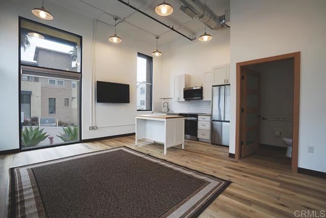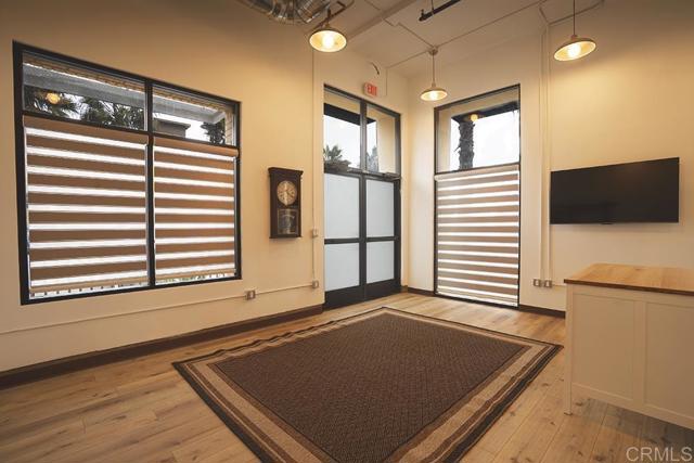 Rare live/work condo offering flexible residential and retail use in a prime location. This unique 1-bedroom, 1.5-bath unit features approximately 700 sq ft with dramatic 15-foot ceilings and a striking modern industrial storefront design. Interior finishes include luxury plank flooring, designer Bali zebra shades, shaker cabinetry, and quartz countertops. The kitchen is equipped with all new Samsung stainless steel electric appliances, including a counter-depth French door refrigerator, slide-in range/oven, and advanced microwave. In-unit washer and dryer included. Building features include fire sprinklers and a central alarm system.Two exclusive parking spaces convey. Community amenities include pool, spa, BBQ area, and outdoor patios. Ideally situated within walking distance to parks, restaurants, and major shopping including Walmart, Target, and over 100 additional retailers. Directly adjacent to the San Luis Rey River and approximately one mile to the Camp Pendleton San Luis Rey gate. A rare opportunity for those seeking flexibility, functionality, and modern design in one space.