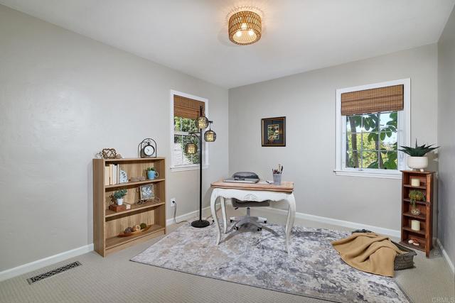 Is there a 3-bedroom, 2-bath, single story home in La Mesa on a large lot, bonus space, and no HOA at $960,000? Yes! 4504 Lee Ave offers 1,397 sq ft plus a 338 sq ft sunroom on a large 11,700 sq ft corner lot. The property is single level, updated, and move-in ready with great ADU potential. Welcome to the kind of opportunity serious buyers wait for. This 3-bed single story home in La Mesa sits prominently on an expansive 11,700 sq ft corner lot, delivering scale, flexibility, and long-term upside in a market where lot size drives value. Offered at $960,000 without the burden of an HOA or Mello-Roos, this is a prime opportunity for a strategic real estate acquisition. Inside, the layout is clean, efficient, and comfortable. Fresh interior paint and new carpet throughout the living room and bedrooms create immediate move-in ready appeal. The remodeled primary suite elevates the experience with a walk-in closet, an ensuite bathroom featuring a beautifully tiled walk-in shower, and French doors opening to the 338 sq ft sunroom that expands your usable living footprint beyond the stated 1,397 sq ft. This bonus space is not included in the main square footage, giving buyers additional flexibility for lounging, hobbies, or entertaining. The kitchen is filled with natural light and overlooks the patio and designer landscaping, creating a seamless indoor-outdoor connection. Granite countertops, abundant storage, newer stainless-steel appliances, designer pendant lighting over the eat-in bar, and a large refrigerator, that conveys with the home, make this space both functional and refined. A stackable washer and dryer also convey with the sale. Additional storage on the property can be found in an 8’ x 12’ wooden shed, a 7’ x 10’ garden shed and an attic space (with a pulldown ladder for easy access). Combining charm and utility, the dining room features a custom built-in banquette with integrated shelving and storage, while the updated guest bath highlights the home’s excellent upkeep. A single car detached garage is currently converted into an office space / workshop, ideal for today’s remote professional, or hobbyist and can easily be converted back, if desired. The garage doors are beautiful, hand-made wooden carriage doors. Ample off-street parking can accommodate up to four vehicles. Step outside and the charm becomes even greater. A large backyard and side yard provides room to expand, entertain, or explore ADU possibilities. The side patio is designed for gatherings with BBQ space, and ample room for a fire feature and seamless access to the yard. Corner lot positioning and mature landscaping enhances privacy and access, a subtle but meaningful advantage. And then there is the location. Just a short, 4-block walk to La Mesa Village will immerse you in vibrant shops, restaurants, community events, and everyday conveniences. Enjoy easy freeway access; approximately 15 minutes to downtown San Diego, and about 20 minutes to Coronado and the beaches. This A+ location combines peaceful residential living with the energy and charm that make La Mesa so sought after. In La Mesa, land matters. Flexibility matters. Single story living matters. This 3-bed single-story home in La Mesa delivers all three, backed by thoughtful updates and long-term potential. A property of this caliber is a rare find.