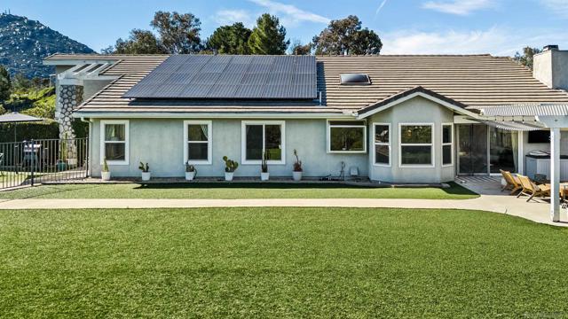 Presenting this spacious single level home nestled within the desirable Shady Oaks gated community. This stylish 3 bedroom, 2 bathroom residence is set on a serene, useable one acre lot, offering privacy and tranquility while enjoying the convenience of being in the west end of Ramona. Designed with comfort and functionality in mind, the home features an open- concept floor plan with vaulted ceilings, a formal dining area, charming breakfast nook off the kitchen, spacious bedrooms and a beautifully re-tiled fireplace that anchors the main living space. The outdoor living area invites indoor-outdoor entertaining, where panoramic mountain view’s can be enjoyed from the pool deck beside a sparkling pool and outdoor bar. The shaded patio beneath the pergola offers yet another inviting space to relax and unwind. Equestrian enthusiasts will appreciate the designated horse space, complete with redesigned fencing and pipe corrals on the lower portion of the lot. Additional highlights include solar panels for energy efficiency, whole house filtration system, newly installed flooring, HVAC, and water heater along with an attached three-car garage, ample parking with an extended driveway. Irrigation installed all throughout property including by the plant garden, fruit trees and horse area. The best hiking, horse trails and wineries are all close by. Presenting this spacious single level home nestled within the desirable Shady Oaks gated community. This stylish 3 bedroom, 2 bath residence is set on a serene, useable one acre lot, offering privacy and tranquility while enjoying the convenience of being in the west end of Ramona. Designed with comfort and functionality in mind, the home features an open- concept floor plan with vaulted ceilings, a formal dining area, charming breakfast nook off the kitchen, spacious bedrooms and a beautifully re-tiled fireplace that anchors the main living space. The outdoor living area invites indoor-outdoor entertaining, where panoramic mountain view’s can be enjoyed from the pool deck beside a sparkling pool and outdoor bar. The shaded patio beneath the pergola offers yet another inviting space to relax and unwind. Equestrian enthusiasts will appreciate the designated horse space, complete with redesigned fencing and pipe corrals on the lower portion of the lot. Additional highlights include solar panels for energy efficiency, whole house filtration system, newly installed flooring, HVAC, and water heater along with an attached three-car garage, ample parking with an extended driveway. Irrigation installed all throughout property including by the plant garden, fruit trees and horse area. The best hiking, horse trails and wineries are all close by.