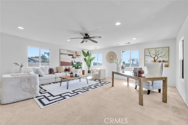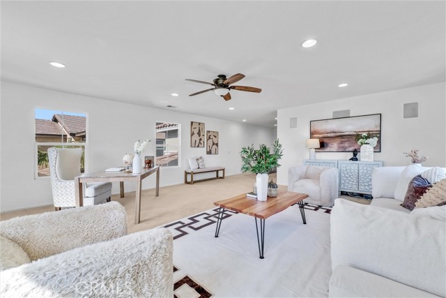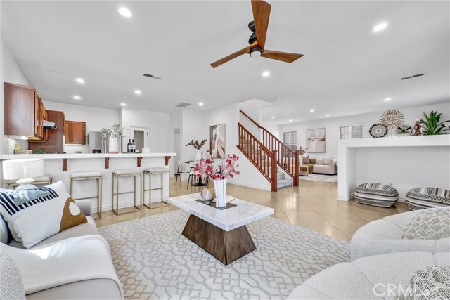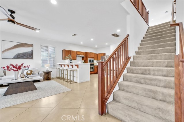Discover unparalleled warmth and traditional sophistication in Rancho Cucamonga! This meticulously designed and impeccably maintained residence offers the perfect blend of traditional elegance and comfortable living. Boasting 3 bedrooms and 2.5 bathrooms with Fresh Interior Paint, this home is a true gem in the heart of a vibrant and growing neighborhood. Step inside to discover an open space for living, dining and kitchen. The modern kitchen is a chef's delight, featuring built-in appliances, tile countertops, walk-in pantry and ample cabinet space for storage. It is open to the dining area and living room. There are a laundry room and another half bath on the first floor as well. All bedrooms are on the upper level. The master suite is a true retreat, featuring walk-in closet and ensuite bathroom with double vanities. The additional 2 bedrooms are generously sized and appointed with a well-full bathroom. There is also a large loft on the second level. it is a flexible space for multi-uses such as office, entertainment and can be converted to additional bedroom. All bedrooms have ceiling fans. The backyard offers ample space for relaxation and entertainment, with a covered patio, lush landscaping, and fruit trees. This home offers perfect blend of suburban tranquility and urban convenience for this home - walking distance to school, park and close to Victoria Garden shops, markets and restaurants. Also, easy access to freeway 15. Don’t miss this great opportunity to live and invest this comfort and elegance property.
