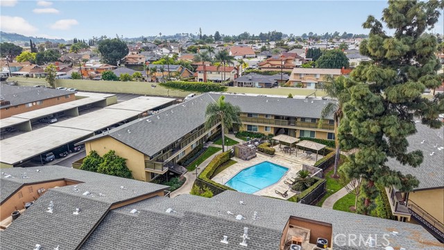 WELL SOUGHT AFTER CREEKSIDE VILLAGE CONDO! This 1 bedroom, 1 bathroom condo is great way to start homeownership in OC., located upstairs so nobody above you, has an assigned covered parking space, located in a gated community and has a premium view of pool. This home plantation shutters & is move in ready! Adjacent to the kitchen is the dining area and open living room. The master bedroom has a large closet. With direct access to the community pool, BBQ and lounge area, this condo has one of the best locations in the community! HOA includes water, trash and gas! Creekside village has 4 community pools, BBQ areas, is pet friendly, gated with gated parking and centrally located to the best of La Habra dining, entertainment, movies, shopping and golf course! See it before it’s gone.