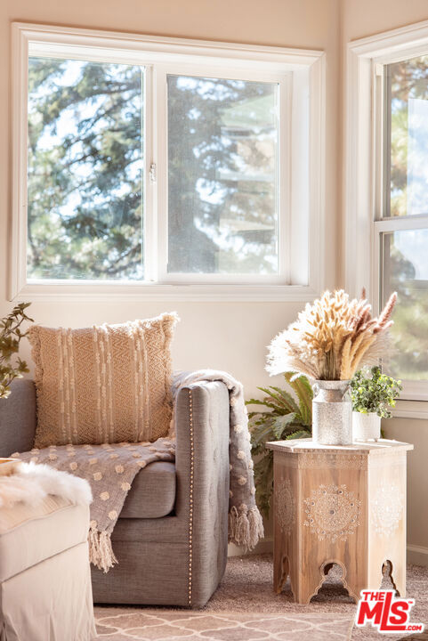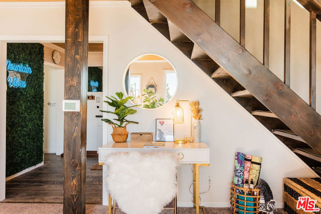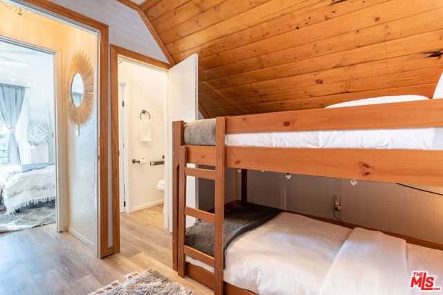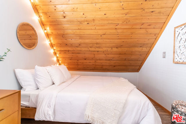 Enjoy the peaceful surroundings and breathtaking beauty of the mountains from two decks, as you take in awe inspiring panoramic views, in the middle of mature pine trees. Step inside to a warm and inviting living area. The fully equipped kitchen is a haven for culinary enthusiasts featuring stainless stell appliances, a farmhouse sink, quartz countertops and upgraded flooring. A wood burning stove will help to warm the house during those cool winter days. Both bedrooms were designed with comfort in mind, with a half bath in between. The main bathroom is sleek and modern, offering a spa-like experience. The home is on a quiet street and walking distance to the town of Running Springs, one of the best hidden gems, with plenty of activities year round. Whether you're a hiking enthusiast, a skiing professional, or simply looking to explore nearby shops and restaurants, there are endless opportunities a short drive away. Make this your starter home or a weekend getaway that you can also short term rent on the side. There is an EV charger on the property, and a spacious storage area underneath with new laundry equipment