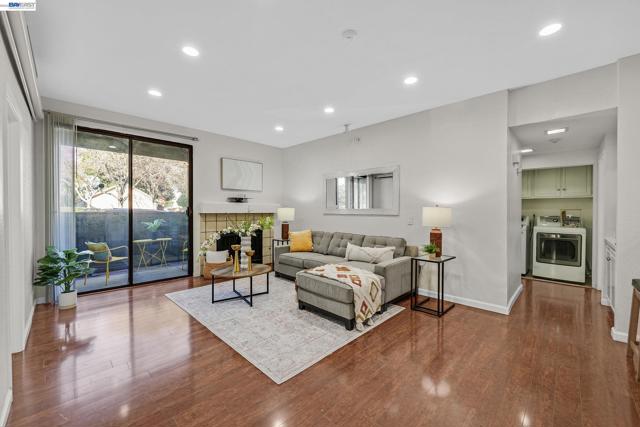 Beautiful ground-floor condo in the desirable Waterford community of Newark! This spacious home offers 3 bedrooms, 2 bathrooms, and approximately 1,249 sq ft of comfortable living space. The bright living room features recessed lighting, a cozy fireplace, and sliding glass doors that open to a private patio. The open dining area flows into the kitchen, which features granite countertops, white cabinetry, and a breakfast bar. The generously sized primary suite offers abundant space, large windows, and an ensuite bathroom with a single-sink vanity and shower-over-tub. Two additional bedrooms provide flexibility for family, guests, or a home office. Additional highlights include a dedicated laundry room with storage cabinets and two assigned covered parking spaces. Enjoy resort-style amenities including a clubhouse, swimming pool, fitness center, tennis courts, and beautifully landscaped greenbelts. Convenient commuter location with easy access to the Dumbarton Bridge, I-880, shopping, dining, and major Silicon Valley employers.