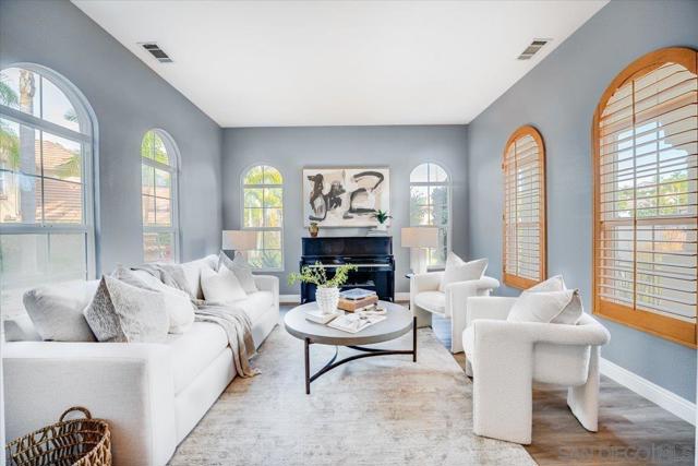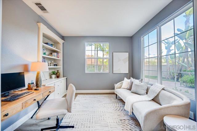 Welcome to this beautiful 4-bedroom, 3.5-bath home in the highly sought-after community of Arroyo Vista. Set on an expansive lot with open views, this exceptional property offers the perfect blend of style, comfort & functionality. The versatile floorplan includes a dedicated first-floor office for privacy. The kitchen opens seamlessly to the inviting family room with fireplace, perfect for everyday living and entertaining. Upstairs, all four bedrooms provide comfort and privacy. The spacious primary suite captures beautiful views and features a retreat area, a large bathroom, and dual walk-in closets. Step outside to enjoy a private backyard with no neighbors behind, creating a peaceful setting to relax and take in stunning sunsets. The yard is perfect for entertaining with a fireplace and seating area, ideal for gatherings and outdoor living. Plus, there is a huge built-in spa for relaxation. In addition to the fabulous yard, there is a large open side yard perfect for dining and play. Conveniently located within walking distance to Olivenhain Pioneer Elementary School, Diegueno Middle, and La Costa Canyon High School. Within minutes to great shopping, dining, and beaches. This home truly offers the best of lifestyle and location.