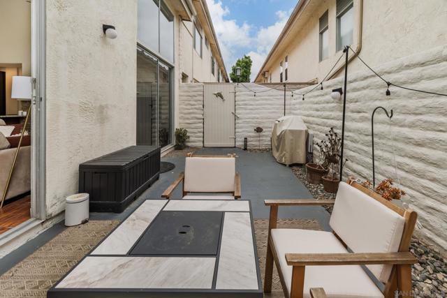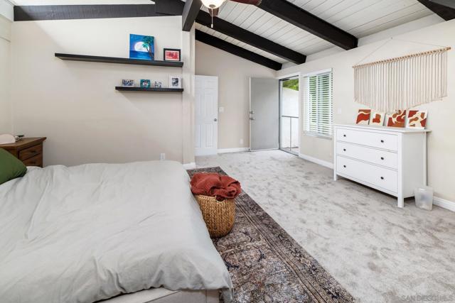 Beautifully upgraded 2 Bed/2 Bath townhome in the highly desirable La Costa Fairways community, offering 1,326 sq ft of light-filled living with a perfect blend of comfort and style. Vaulted ceilings with exposed wood beams and expansive floor to ceiling windows create an open, airy feel, while rich wood laminate flooring adds warmth throughout. The inviting living room centers around a cozy fireplace and opens seamlessly to a private patio through oversized sliding doors, ideal for indoor/outdoor living and entertaining. The well appointed kitchen features travertine tile flooring, granite countertops, and stainless steel appliances, designed for both everyday living and hosting. A full bedroom and updated bath on the main level provide flexibility for guests, a home office, or multigenerational living. Upstairs, the spacious primary suite offers a peaceful retreat with its own private balcony to enjoy coastal breezes, along with an upgraded ensuite bath featuring a walk-in shower, dual vanities, and a generous walk-in closet. Ideally located adjacent to the La Costa Golf Course and just minutes to beaches, top-rated schools, shopping, dining, and freeway access. This is an exceptional opportunity to enjoy the best of North County coastal living.