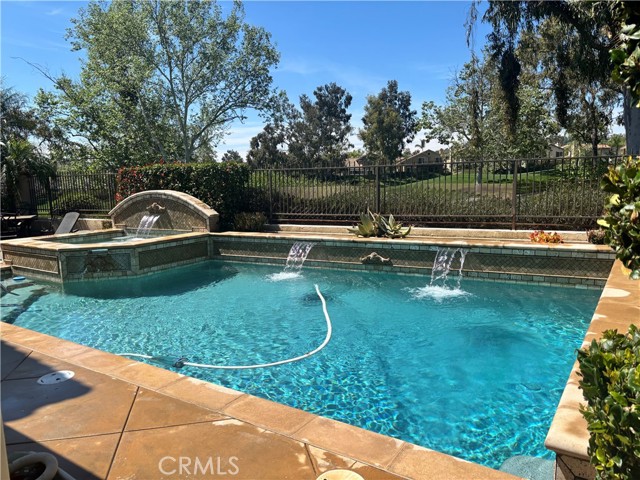 Nestled on the peaceful Tijeras Creek Country Club in the safe, family-friendly city of Rancho Santa Margarita. This stunning 4 bedroom 3 bath home is pure luxury. Downstairs, you will find a private guest suite-one bedroom with walk in shower perfect for visitors or in laws. Inside laundry room keeps things easy while on the main floor. The set up flows seamlessly: a bright living room, formal dining. A family room with a fireplace sits next to the kitchen. The kitchen, WOW, just WOW!!! tons of cabinets, granite countertops, windows are everywhere pouring in natural light. It is open, airy and ready for gatherings. And an ELEVATOR, yes an elevator! Takes you up and down with ease. Take your laundry up easily without a fuss. Step outside to your private oasis: a sparkling pool and spa, plus a built in barbecue overlooking the 8th hole. Plantation shutters throughout. Grill while watching golfers glide by...total resort vibes. This is living...golf course view, smart layout, zero hassle and chef's dream kitchen. Come and see for yourself. Home has new HVAC as well as a a NUVIA water softener, Bosch dishwater, new refrigerator and newer stove. New flooring in the kitchen and family room as well as the downstairs bedroom. A MUST SEE!!! DOGS ARE IN THE GARAGE - DO NOT ENTER GARAGE