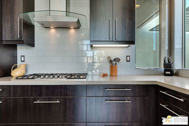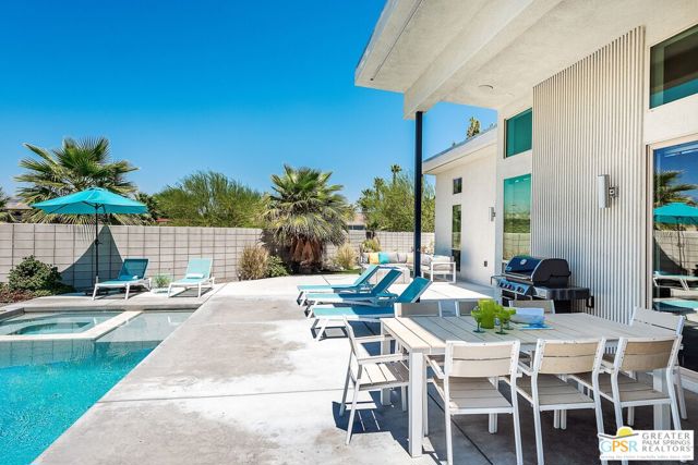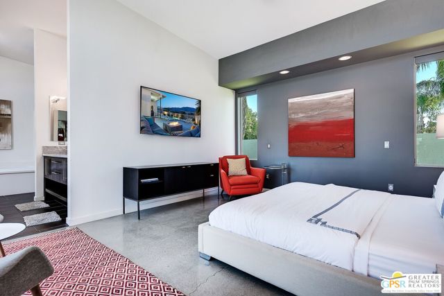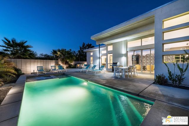Panoramic mountain views, exceptional privacy, and one of the largest lots in Murano define this stunning modern 3-bedroom, 3-bath residence designed by renowned architect James Cioffi, AIA. Positioned on a premier private corner lot, this home captures sweeping, unobstructed views while offering a rare combination of space, design, and lifestyle with no HOA fees, an owned solar system, and energy-efficient construction resulting in impressively low utility costs. The outdoor experience is truly next level and a standout even within Murano. Fully turfed for low maintenance and year round enjoyment, the expansive grounds are designed for both entertaining and relaxation. Enjoy a resort style pool and spa with custom fire feature, a dedicated bocce court, private putting green, generous side yard for games and gatherings, and an oversized backyard with room to further enhance. Multiple outdoor living areas take full advantage of the views, creating a true desert retreat. Inside, the open concept floor plan is enhanced by vaulted ceilings, clerestory windows, concrete flooring, and walls of glass that flood the home with natural light while seamlessly blending indoor and outdoor living. The primary suite serves as a private retreat featuring direct access to the pool, stunning views, and a spacious bath with dual vanities, walk in shower, soaking tub, and walk in closet. Two additional bedrooms are thoughtfully separated for privacy, including a junior ensuite and a third bedroom with an adjacent full bath. Additional features include a dedicated laundry room with sink and an attached two car garage. Currently operating as a stable and profitable rental, this property also presents a compelling investment opportunity. Whether you're seeking a full time residence, seasonal escape, or income producing asset, this exceptional Murano home delivers on every level with design, privacy, outdoor living, and long term value. Offered Turn Key Fully Furnished.