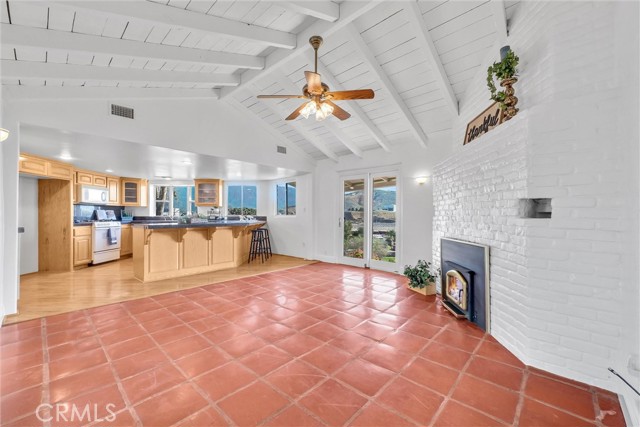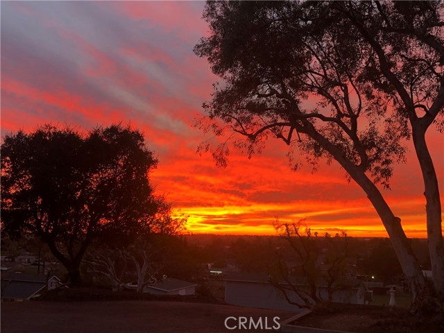 Drive up to your own private paradise! Perched atop the city on 1.92 acres, this 4 bedroom, 3 bathroom home offers incredible 360 degree views, from snow capped mountains in winter to unforgettable sunsets at night. Step inside through double doors into a home freshly painted inside and out, with new carpet in the primary and two guest bedrooms, while the rest of the home features durable tile and laminate flooring. The spacious kitchen boasts stone countertops, a wraparound bar with ample seating, recessed lighting, and a bay window framing stunning views. The living room and family room share a double sided brick fireplace and feature vaulted wood beam ceilings, creating an open and inviting space perfect for entertaining or relaxing. The primary bedroom is a serene retreat with a vaulted wood beam ceiling and dual ceiling fans, while the other bedrooms feature charming wood beam ceilings. The primary bathroom includes a separate soaking tub and an oversized shower. Additional highlights include a large laundry room with plenty of cabinet space, a 2-car attached garage, and expansive outdoor areas to enjoy the breathtaking surroundings. Enjoy the large covered patio at the front of the home perfect for morning coffee or evening sunsets. This home combines comfort, style, and spectacular views, truly a hilltop oasis you won’t want to miss.