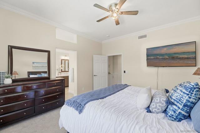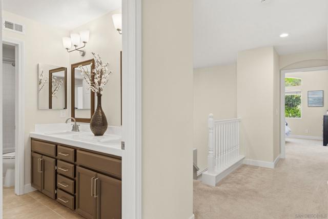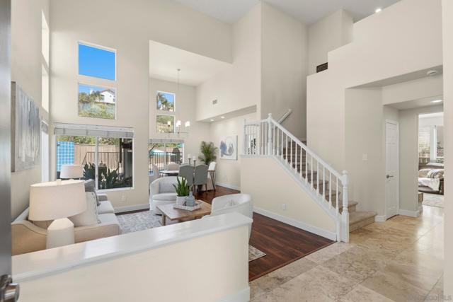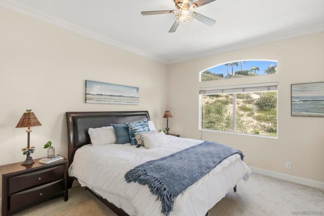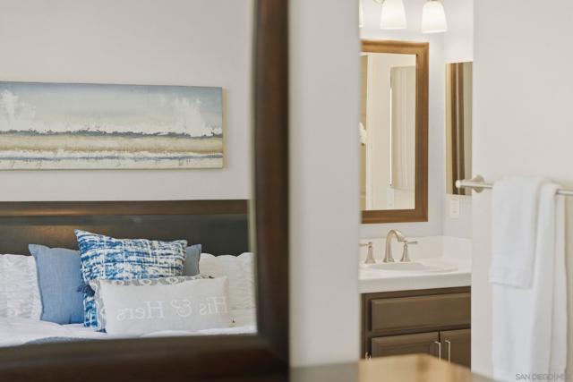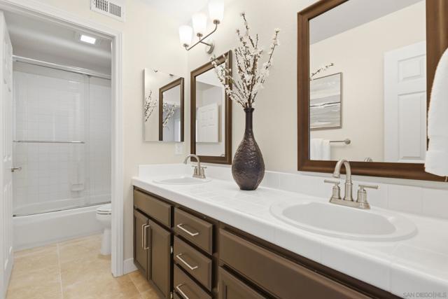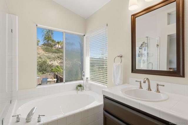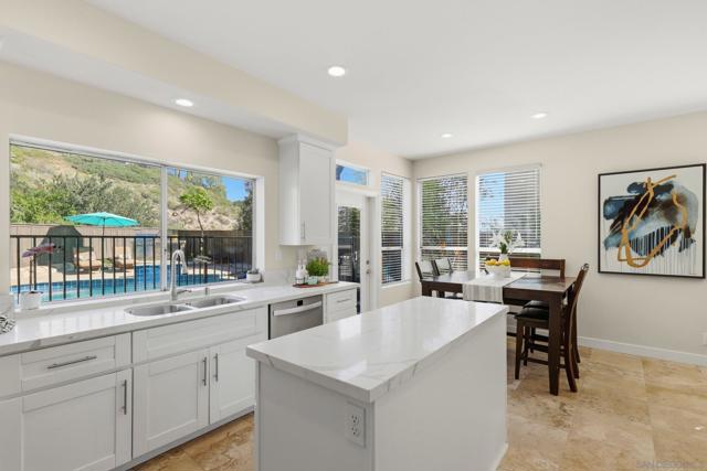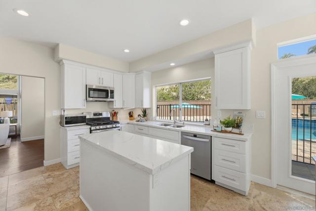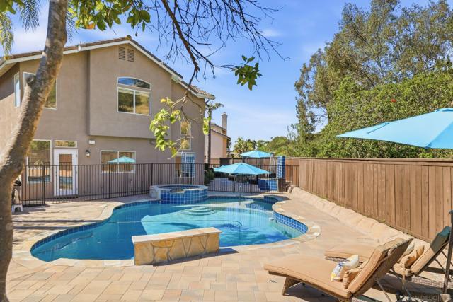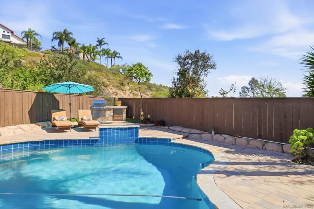 Tucked at the end of a quiet cul-de-sac, this 4-bed, 2.5-bath home delivers the San Diego lifestyle you've been dreaming of. Step outside and you're in your own private resort — a stunning pool and spa, built-in BBQ, gas firepit lounge, outdoor TV, and sweeping hillside views with no rear neighbors. The expansive paver patio was made for entertaining, and the bright, updated kitchen with white shaker cabinets and quartz counters keeps you connected to it all. This one checks every box. Come see why Park Village is home. Home Upgrades: Interior painted, 2025, New interior light fixtures, 2025, New interior door handles, 2025, New bedroom ceiling fans w/lights, 2025, New kitchen stove & microwave, 2025, New pool/spa equipment, 2022, New gutters and drains, 2022, Pool and backyard remodel: Pebbletech, addition of Baja step and umbrella stand, new custom coping, new mosaic tile in pool and spa, waterfall feature. Hardscape/landscaping: Redesign of backyard topography. Belgard pavers. New steel reinforced fence, hotel/industrial grade 5' steel fence around pool. Custom iron/wood gates at two points of front yard entry, custom pillars at entry way matching the pool coping, concrete wall enclosure at front of yard to connect gates to fence and form enclosure. Custom mosaic glass tile shower connected to pool plumbing. Exterior: Samsung Terrace TV (equipment, 20amp circuit install, specialized heavyweight mount & install), Chef fridge, BBQ w rotisserie, granite countertop at BBQ. New kitchen cabinetry and quartz countertops. Interior Flooring: Travertine & ceramic tile, carpet, laminate. Master and kid baths update to glass showers. Property line follows the line on both sides of the home all the way to the top or very near the top. A title report and plat map will confirm property lines. Garage epoxy flooring and custom storage and racking. Last but not least ... Pickleball court right out the front door in the cul-de-sac!
