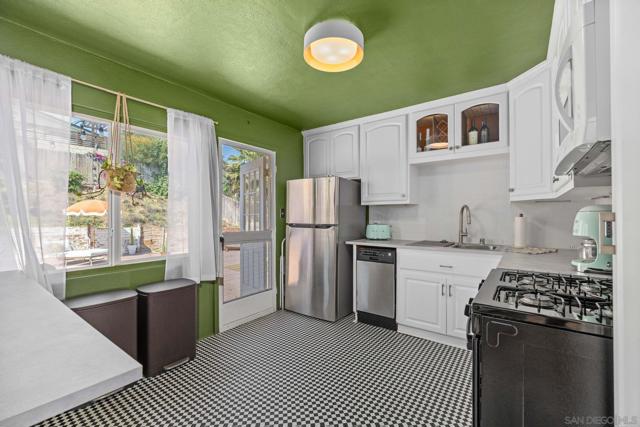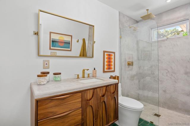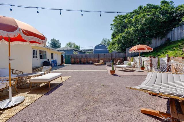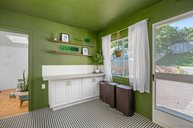 Step into this beautifully updated 1951 midcentury ranch bungalow in the heart of Rolando Park, where original character meets thoughtful modern upgrades. Iconic Malm Zircon electric fireplace anchors the living room with its striking midcentury modern conical design. Newly refinished hardwood floors flow through the main living spaces, complemented by a fully renovated bathroom featuring Kohler hardware, Clé tile flooring, a custom concrete shower, and a handcrafted walnut vanity. The home offers comfort and efficiency with central heating and air, newer kitchen appliances, new ceiling fans, new plumbing, and a high-speed Tesla charger. A permitted garage conversion creates a spacious second living area with parquet flooring—perfect as a family room, studio, or guest space. Both front and back yards have been transformed with drought-tolerant landscaping, a new drainage system, and a drip/sprinkler setup in the back. A storage shed adds extra convenience, while the Google Nest security system, doorbell, and thermostat provide peace of mind. Solar panels keep energy costs low. Located within walking distance of a highly rated elementary school, this home blends charm, comfort, and modern living in one of San Diego’s most welcoming neighborhoods.