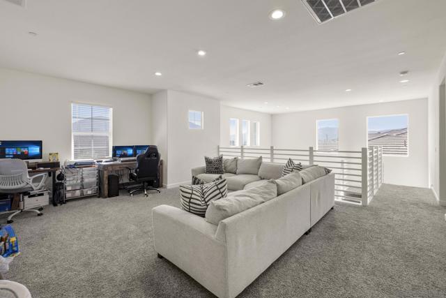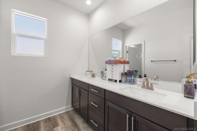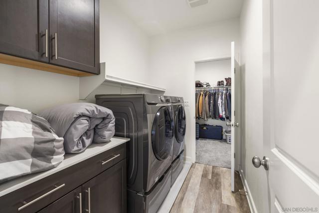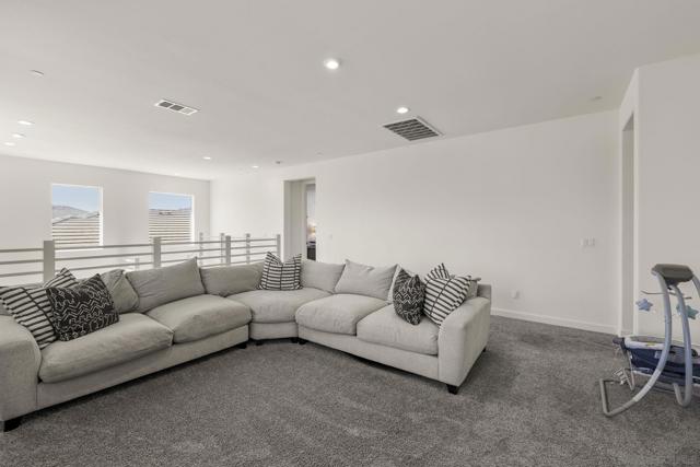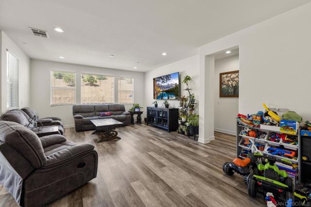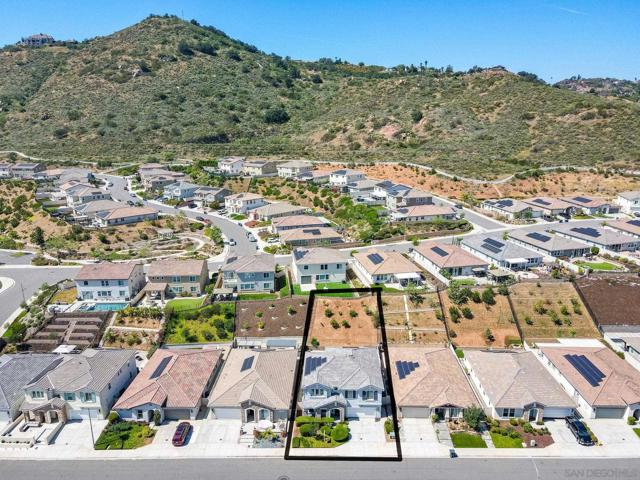 Welcome to Aurora Heights! A beautiful, low tax, newer community in Fallbrook close to base, shopping, schools, golf, casinos and easy freeway access for your convenience. This property features luxury vinyl flooring, quartz counter tops, dark oak cabinets, dual pane windows, tankless water heater, water softener and paid off solar panels. The kitchen features a large 10 ft island and a large walk-in pantry. A first floor bedroom with close access to a full bath adds convenience for guests or family. The large loft can easily be used as an office or entertainment space and the master walk-in closet has its own pass through to the upstairs laundry room for super easy access during laundry days. Take advantage of the tandem garage set up with a work out area or additional parking. Backyard includes Lemon, Mandarin, Peach, Tangelo, Apple, Strawberry Guava, Orange, Pomegranate, Ruby Supreme Guava, Avocado, Santa Rosa Plum, Mango trees along with 4 Blueberry bushes and 2 green seedless Grape vines for delicious fruit all year long. Enjoy one of the largest lots the community has to offer along with easy care turf in back. Walk to the community park and enjoy the pool, spa, playground, basketball court, and large green area for enjoyment on those days off.