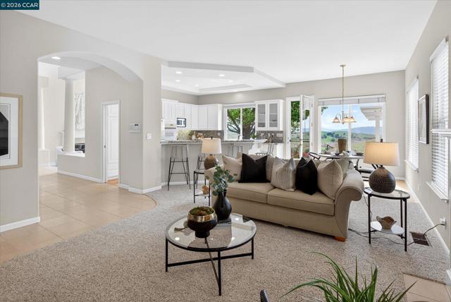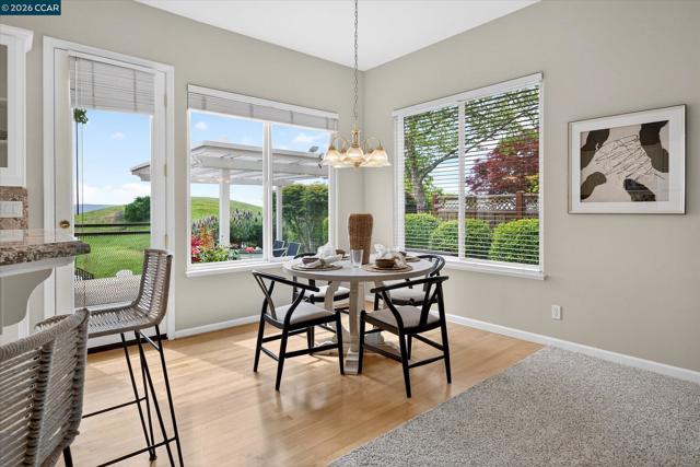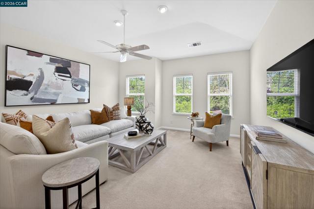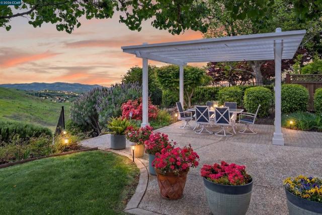 Awe-inspiring panoramic open space, hillside, golf course views. Lush gardens. Spacious, light-filled 2-level flrpln w/in gates of Blackhawk Country Club. Cul-de-sac. Ultra-private .32 acres near Falls Clubhouse. 3728+/-SF. Soaring ceilings, updated carpet, tiled flrs. 5 bds, 4 bths inclds main-level primary suite, guest rm/office w/pvt entry. Formal living rm w/2-story view wndws, frpl. Formal dining rm. Updated chef’s eat-in kitchen. Granite slab counters, brkfst bar, bksplsh. Newly painted cabinetry, upper glass-faced. GE Monogram appls. 5-burner cooktp, frig, dishwasher, dual ovens. Family rm w/frpl, built-ins. Bonus rm ideal for game/media rm/5th bed. Primary ste w/gas frpl, sitting rm area. French dr to hot tub, gardens. Walk-in & reach-in closets. En suite w/dual-sink vanity, jetted tub, oversized shwr. 2 upstairs bdrms share Jack & Jill bthrm w/dual-sink vanity, tub/shwr combo. Bkyd sanctuary. Lush gardens, patio, pergola, hot tub, lawn, mature trees, terraced gardens. 2 & 1-car garages. Epoxy flr. Storage/wkbench. Dual HVAC. Dual wtr htrs. Laundry rm w/sink, cabinets. Sec. alarm. Near golf, tennis/pickleball cts, clubhouses, fitness ctr, sports complex, Blackhawk Plaza, downtown, farmers markets, freeways, top-rated SRVUSD schls, Mt. Diablo, parks, Livermore Wine Ctry.