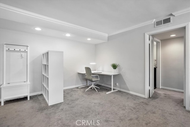 Enjoy a rare opportunity to own a fabulous spacious turnkey condo in the heart of Brentwood Village. Located in 5 acres of landscaped grounds with ponds, a large picnic area, dog park & ample parking; a serene atmosphere that is almost impossible to find. This resort like setting features two beautiful pools & a spa. Situated within walking distance to shops, restaurants & parks, & only minutes from the UCLA campus & the 405 Freeway. Enter this quiet front unit & you will be amazed by the spacious, light & large open floor plan, with views to the pools & lush landscaped gardens.The flowing living room not only boasts an ample dining area but also has a large bonus area ideal for an office. Sliding doors allow access to the spacious, enclosed & very private sunny patio – perfect for entertaining family & friends.The dining area is a good size & the fully remodeled kitchen, with quartz countertops, allows space for a breakfast table. Sliding door to the private patio too allow easy access for those BBQ days! The large bedroom features a custom built walk-in closet, a second double closet & sliding door access to the patio. The spacious remodeled bathroom has a separate shower & bathtub, dual sinks & marble countertop. Secure garage parking, with extra storage, A/C, recessed lights, new furnace and electric panel, plus much more - an opportunity not to be missed!