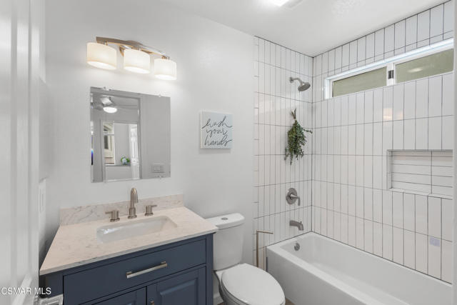 Beautifully upgraded end unit, 3-story townhome offering exceptional natural light and a prime coastal location just one mile from the beach, is a must see! Thoughtfully designed with open sight-lines, modern upgrades, and flexible living spaces, this home delivers comfort, functionality, and an effortless coastal lifestyle.Throughout the home, you'll find a refined blend of newer carpet and flooring, creating a warm yet updated feel across all levels. The updated kitchen (2024) is a true centerpiece, featuring quartz countertops, white cabinetry, a stylish backsplash, gas range, bar seating, and an expansive dining area ideal for everyday living and entertaining.The home's layout offers exceptional versatility across two connected living levels. The main floor features a welcoming space with a gas fireplace, soaring vaulted ceilings that extend to the upper level, and direct access to a bright private patio, creating an open, airy feel. This level can function as a traditional living room or be reimagined as a formal dining space, depending on your lifestyle.The upper level overlooks the space below. Here, the spacious dining area flows seamlessly into the kitchen, while the adjacent built-in desk/office nook can be transformed into a comfortable media lounge with a sectional and TV--creating a second living area just off the kitchen and ideal for casual gathering or entertaining.Both bedrooms are configured as private primary suites, each with its own en-suite bathroom. The main suite features a beautifully upgraded bath with a large shower, frameless glass, built-in bench, and dual vanities thoughtfully positioned in a separate space from the shower and toilet, offering both privacy and functionality. The inside laundry area is located upstairs making for easy access and convenience.Outside you will find a bright private patio, complete with a natural gas line for grilling, perfect for relaxing or entertaining. The attached 2-car garage offers convenience and includes overhead hanging storage racks for efficient organization, along with MyQ smart technology for remote access and in-garage Amazon deliveries.Ideally located near a scenic creekside path that leads directly to the beach--and in the opposite direction to the local library, this home offers the perfect balance of nature, recreation, and everyday convenience. Enjoy refreshing coastal breezes throughout the home by simply opening the windows and sliding doors.With abundant natural light, high ceilings, extensive upgrades, and a thoughtfully flexible layout, this home delivers the best of coastal living in a modern, move-in-ready package. Possible assumable VA Loan at $4.205% available for qualified Buyer.