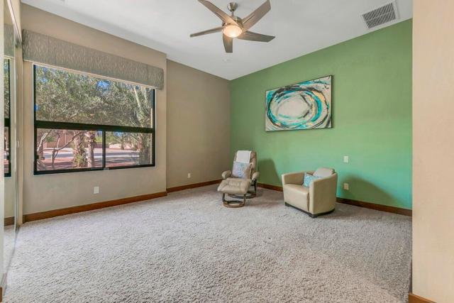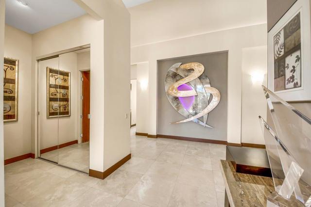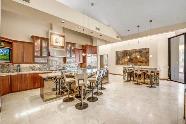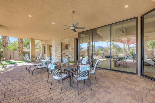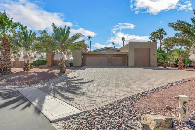 A rare opportunity to own a true desert compound designed for scale, versatility, and lifestyle. Set on 1.3 acres of open space and framed by breathtaking panoramic mountain views, this one-of-a-kind estate delivers unmatched flexibility for collectors, investors, and those seeking privacy without compromise.Bring your motor coaches, exotic cars, and recreational toys, this property was built to accommodate it all. Featuring a 5-car detached garage, a 45-foot bus garage, and an attached oversized garage with a 14-foot roll-up door, there is room for everything and more.Inside, the home showcases elevated design and craftsmanship with polished travertine flooring, an expansive open-concept layout, and walls of glass capturing awe-inspiring desert views. The chef's kitchen is both functional and striking, offering stainless steel appliances, granite countertops, a beverage center, and a massive walk-in pantry.All three bedrooms are private en-suites, including a luxurious primary retreat complete with a soaking tub, oversized walk-in shower, and a space designed for true relaxation.Step outside to your own private resort--featuring a saltwater pool, luxury spa with waterfall, and endless views that create a sense of total escape.Adding to the property's value and uniqueness, the estate includes 145 Medjool date trees. There is also ample space to build an ADU or expand into a multi-structure compound. The detached garage offers potential for conversion into a guest casita or additional living space.Offered furnished per inventory list, this property is not just a home it's a rare investment in lifestyle, income potential, and long-term value.
