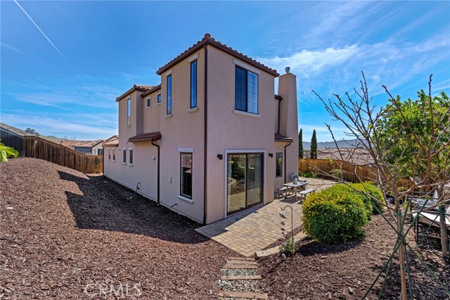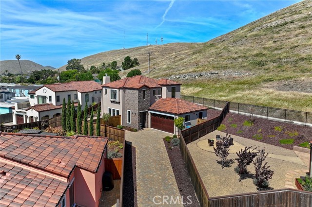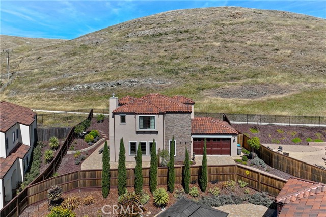 Tucked away in the desirable Toscano community, this beautifully maintained home offers a peaceful, private setting set back from the street with its own driveway leading up the hill. Its elevated position creates a sense of separation from neighboring homes, making it feel quiet and tucked away while still part of a vibrant neighborhood. Built in 2022, the home features 3 bedrooms and 2.5 bathrooms across approximately 1,741 square feet of living space. High ceilings and an open layout create a bright, airy feel throughout the main living areas. The kitchen is equipped with LG appliances and flows seamlessly into the dining and living spaces, where a cozy gas fireplace adds warmth and charm. Upstairs, the bedrooms offer comfortable, functional living, including a spacious primary suite. The home has been meticulously cared for and shows true pride of ownership. The property sits on a 7,002 square foot lot, with a backyard that includes a selection of fruit trees and vegetable plants, offering a great starting point for a garden or outdoor retreat. A two-car garage provides added convenience and storage. The home backs to a natural mountainside, providing a quiet, scenic backdrop with no homes directly behind. Located in one of San Luis Obispo’s newer communities, Toscano is known for its scenic hillside setting and close proximity to trails, shopping, and downtown, making it easy to enjoy the Central Coast lifestyle.