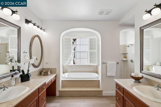 Discover Shapell’s signature craftsmanship in this exceptional “Magnolia” residence, ideally located in the prestigious Alamo Creek community. Built in 2006, this stunning Modern Craftsman style home offers approximately 3,431 square feet of thoughtfully designed living space, blending timeless elegance with modern comfort. Featuring 5 spacious bedrooms and 4.5 bathrooms, the home includes formal living and dining rooms, along with an expansive open concept kitchen, family room, and sunlit breakfast nook, perfect for both everyday living and entertaining. A standout feature is the private apartment style casita with a full bathroom, centered around a charming courtyard, ideal for guests, multigenerational living, or a private office. Situated on a premium 6,707 square foot lot with no rear neighbors, the property offers beautiful sunset views and enhanced privacy. The professionally landscaped grounds feature a tiered slate entry, inviting courtyard with café lighting, and lush gardens with fruit trees and manicured hedges. Additional highlights include a 3 car tandem garage, owned solar system, and Tesla charging station. Welcome home to Alamo Creek, where every detail inspires.