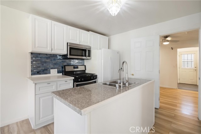 Welcome to 6854 Quinton Lane, a well-updated 2-bedroom, 2-bath home offering comfort, privacy, and convenience. The open-concept layout connects the kitchen and living area, creating a bright, functional space. The primary suite features a custom walk-in closet and direct backyard access. The remodeled kitchen includes new cabinetry, countertops, center island, reverse osmosis system, and touch-less faucet. Additional upgrades include double-pane windows, updated flooring, a frameless glass shower, improved HVAC, newer appliances, and a hardwired security system. The private backyard is ideal for relaxing or entertaining, with direct access from the primary suite. A custom 3-car sliding gate provides added security and off-street parking. Conveniently located near shopping, dining, and everyday essentials in a welcoming Tujunga neighborhood. Move-in ready and ideal for first-time buyers or long-term value.