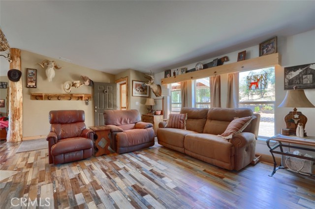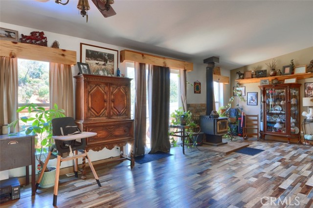 Beautifully upgraded manufactured home is waiting for you on 7.9+/- peaceful acres and set to take in the fantastic panoramic views! This property has a great set up with open air horse stalls, fenced arena, huge workshop area, green container tack room, carport, shed, storage shed and there's room for a garage. Come on in to feel right at home in this 4 bedroom, 2 bath manufactured home! Custom woodwork throughout, living room, family room with a woodstove and the kitchen is open to both the family room and living room. The kitchen continues the charming details with a great breakfast bar, center island, tile counter tops and lots of cabinets. The 3 guest bedrooms are roomy with nice sized closets and a guest bath has a tub/shower. The primary bedroom is light and bright with large windows and a huge primary bathroom that includes a 2 sink vanity and a soaking bathtub. The workshop area includes a carport and is ideal for the do-it-yourselfer in the family! The open air stalls and arena are ready for your horses or just take a slow horseback ride to watch the sunset while you enjoy the natural beauty that surrounds you on this almost 8 acres! There is even a custom carport that is extra tall for an RV or to park large equipment. 2 storage sheds are located near the home as well. If you are looking for room to roam in a peaceful setting, then start your search here! Excellent location if you commute to Fresno or Madera. 32791 Road 416 in Coarsegold is a great listing that you need to see!