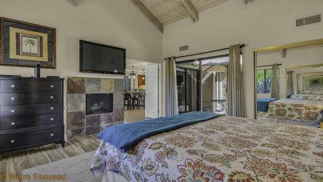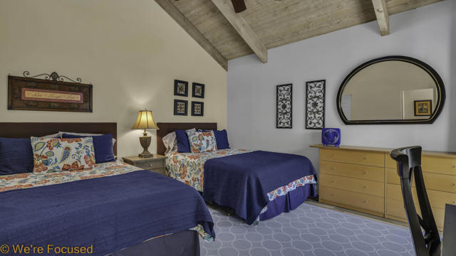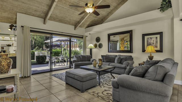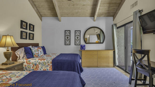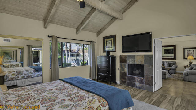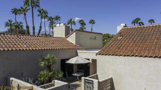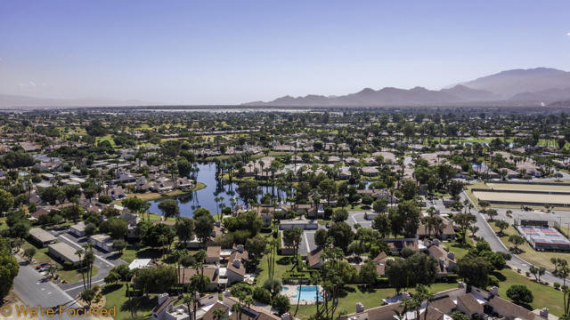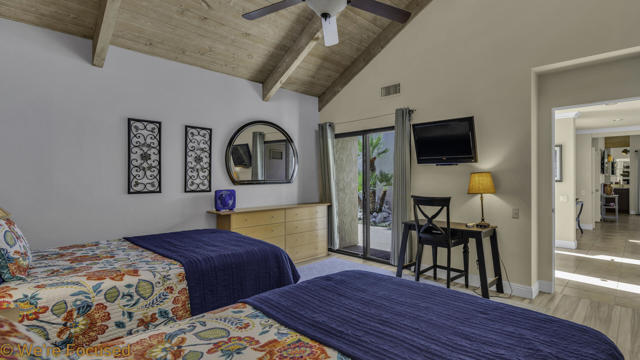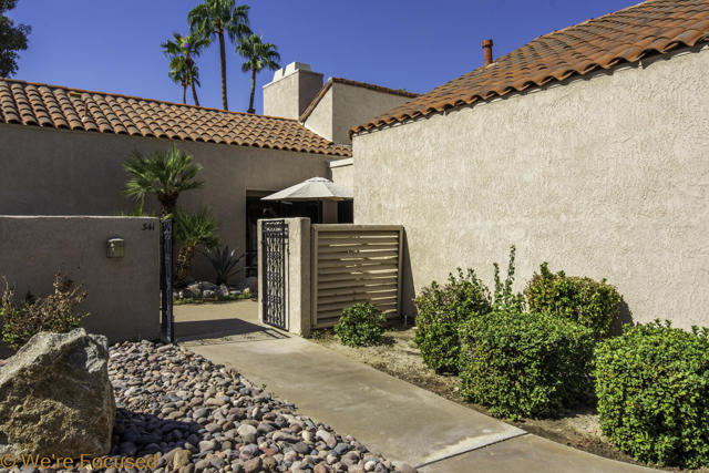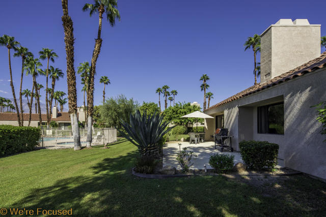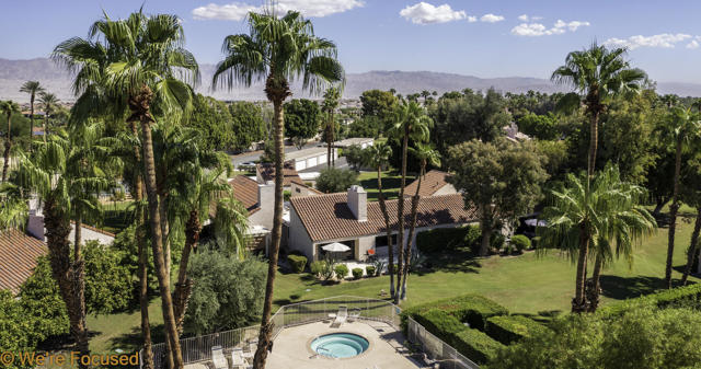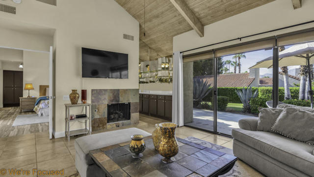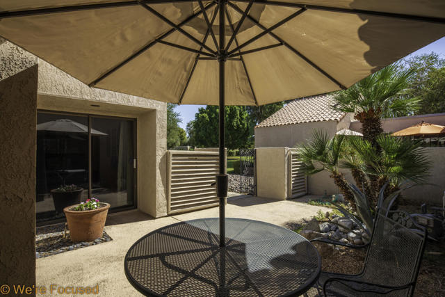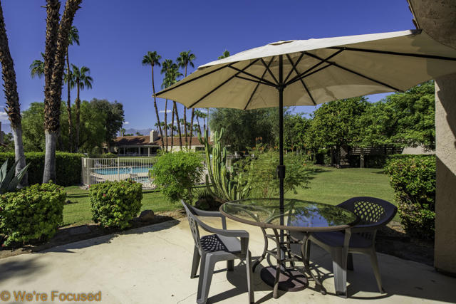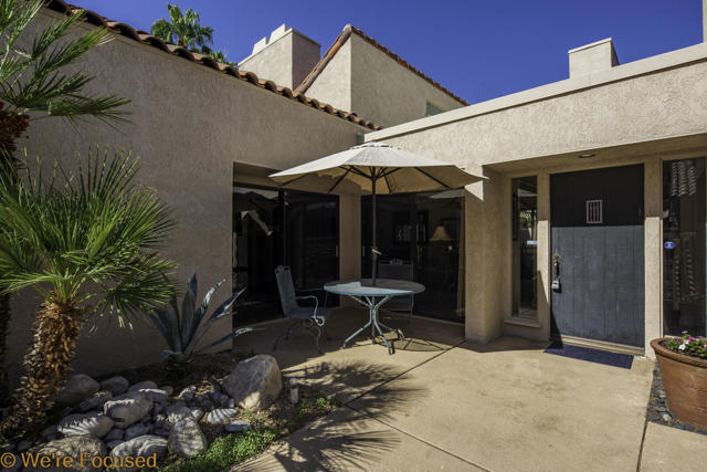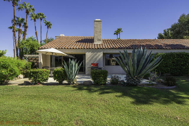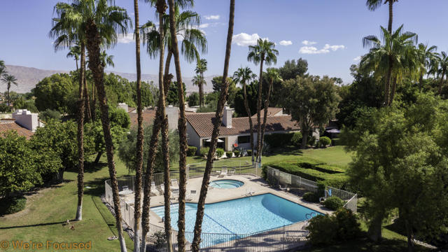 This Southwest-facing, turnkey furnished desert retreat showcases sweeping views of the lush open spaces at Mission Hills Country Club and offers the perfect blend of comfort, style, and resort living.The highly desirable Courtside floor plan features 2 bedrooms and 2 baths, thoughtfully furnished and beautifully decorated throughout. The spacious Great Room is warm and inviting with a dramatic vaulted wood-beamed ceiling, cozy fireplace, and wet bar ideal for relaxing evenings or entertaining guests. Ceramic tile flooring flows seamlessly throughout the home.The updated open kitchen is both stylish and functional, appointed with granite countertops, stainless steel appliances, and abundant cabinetry for storage. A separate utility room conveniently houses the washer and dryer. The primary suite is a private retreat featuring vaulted ceilings and sliding glass doors that open to the serene front courtyard. The en-suite bath includes dual vanities, a tub and a separate shower. The guest bedroom, located in its own private wing, offers an en-suite bath and courtyard access providing comfort and privacy for visitors.Step outside to enjoy true indoor-outdoor desert living. The spacious rear patio is perfect for entertaining or unwinding while taking in tranquil pool and mountain views. The private frontcourtyard offers a peaceful setting for morning coffee or evening relaxation.With a Social Membership you can enjoy Tennis Courts, Fitness Center, Pickleball Courts and Croquet Lawns. Conveniently located and easy access to the Palm Springs Airport, Eisenhower Medical Center, Agua Caliente Casino, Palm Springs Airport, the shops at El Paseo, as well as fine dining. Enjoy desert living at its finest! Mission Hills also is the home of 3 championship golf courses..