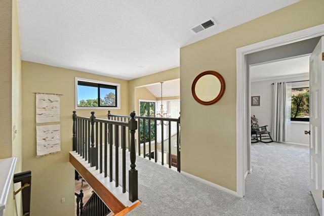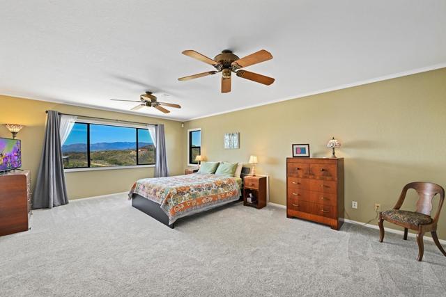 Beautiful 4 bedroom plus office custom home set on 4.23 spectacular view acres at the end of a peaceful cul-de-sac. This 2 story home offers privacy, sweeping views, diverse landscaping and a productive organic family fruit tree orchard which provides a continual variety of fruit. The property is immersed in nature while still being walking distance to Fallbrookâs charming Main Street. Inside, the layout features a mix of formal and casual living spaces. The dedicated living room has soaring ceilings and a beautiful brick fireplace. An adjacent dining room is a highlight with its West and North views. The family room opens directly to the kitchen and has an efficient wood burning stove. This room also enjoys a wet bar with custom tile backsplash. The updated kitchen is designed for both everyday living and entertaining, complete with granite slab countertops, stainless steel appliances, a walk in pantry and lovely breakfast nook. The main level also includes a spacious office/den/library as well as a full bathroom. A convenient laundry room provides plenty of additional storage. The 2nd story with gorgeous views from every room features a large primary bedroom suite and 3 generous sized bedrooms with an additional full bathroom. Outdoor living is a standout feature with multiple areas to take in the stunning surroundings-including a covered back patio ideal for entertaining. The property includes a work/storage shed, a cute chicken coop and room for an RV. With abundant usable land, the property offers incredible flexibility for whatever vision you have in mind. NOTE: The property last sold in 2006 and included approximately 1.5 acres of land. The current owner later purchased the adjacent vacant parcel for $100k in 2007 and now the total land included is 4.23 acres. Tax records are up to date.
