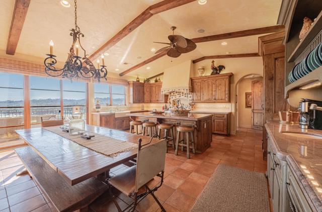 Welcome to 8730 Bluff Ct in Oak Shores at Lake Nacimiento where lakefront living is front and center! Set above the water with wide-open views, this custom-built 5BD/5.5BA home offers approx. 4,502 sq. ft. designed for either relaxed weekends or full-house gatherings. The main level sets the tone with exposed beams, rich woodwork, and a spacious kitchen that opens to the living and dining areas. The primary suite is also on this level, creating a comfortable, easy everyday layout. Step outside and you're immediately pulled toward the views, expansive decks and balconies made for morning coffee, sunset dinners, and long summer nights with friends. Downstairs, the home opens up even more. The terrace level features multiple bedrooms, including three with en-suite baths, along with a massive recreation room, ready for game tables, movie nights, or overflow guests. The lower level offers additional bedrooms, a wine cellar, a large sitting area, and additional storage, ideal for longer stays or hosting extended family. An oversized 3-car garage leaves room for boats, gear, and everything that comes with the lake lifestyle. With over 1,700 sq. ft. of balcony space and a thoughtful multi-level layout, this is a home built to be enjoyed by all!