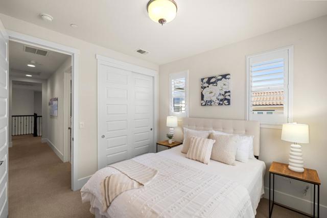 East Garrison remains one of the few new home developments within easy reach of the Monterey Peninsula. Warren Avenue is a wide, sun-drenched street where the community's signature pride of ownership resounds through every manicured yard, and residents enjoy a sprawling park just seconds away. This immaculate home is on the market for the first time since it was built, and it appears in true showroom condition. Step inside, and sense the grand scale immediately. An open concept living and dining area flows into a gorgeous kitchen and, through windows lining nearly every wall, the fenced backyard with its built-in fire pit and covered patio is visible from the moment you walk through the front door. Dark wood cabinetry, granite countertops, a cream tile backsplash, a massive pantry, a five-burner gas range, and a breakfast bar fill a kitchen to satisfy the most discerning chefs. A wide carpeted staircase sweeps up to a second level with three bedrooms and a lofted bonus space or home office. But the true discovery appears before you ever enter the home: a curtained outdoor sunroom off the front porch, custom-built and lit naturally by massive square-paned windows. Pull back the drapes on a sunny afternoon, set down your coffee, and feel the luxury of a home that wants for nothing.