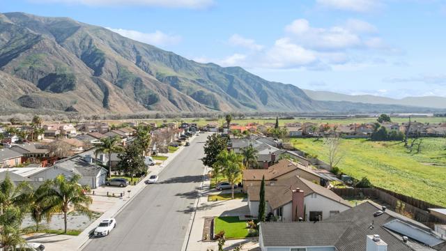 Charming single-story home offering 2 bedrooms, 2 bathrooms, and 890 sq ft of comfortable living space on a spacious 6,098 sq ft lot. This property features an attached two-car garage, convenient side-yard RV or boat parking, and low-maintenance synthetic turf in the front yard that enhances curb appeal year-round. The open living room features vaulted ceilings, upgraded flooring, a cozy gas-starter fireplace, and large windows that fill the space with natural light while capturing beautiful views of the San Jacinto Mountains. The kitchen offers granite countertops, white cabinetry, range hood, garden window, and a breakfast bar with seating, ideal for casual dining or entertaining. It also provides direct access to the backyard for easy indoor-outdoor living. Down the hallway, you’ll find both bedrooms and bathrooms. The primary suite features vaulted ceilings, walk-in closet, and sliding glass door to the backyard. The en-suite bathroom includes sink and a shower/tub combo. The secondary bedroom also offers vaulted ceilings, flooring, and a ceiling fan. Step outside to a generously sized backyard with a concrete patio and full fencing—ready for gardening, entertaining, or future customization, all while enjoying the scenic mountain backdrop. Conveniently located near schools, parks, shopping, and dining, the home is also just minutes from Mt. San Jacinto College, as well as Soboba Casino and Soboba Springs Golf Course, with easy access to major roadways.
