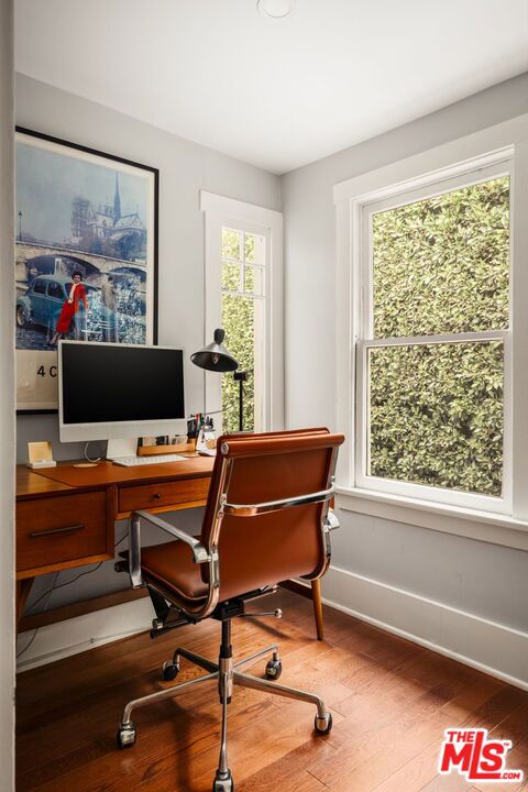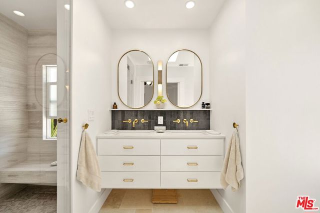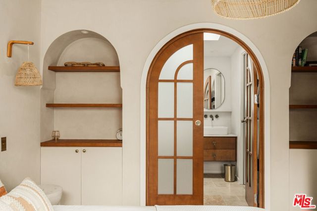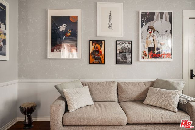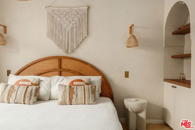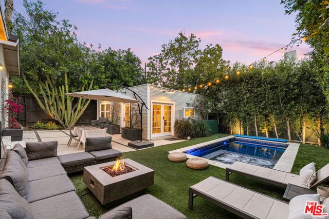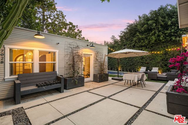 Welcome home to this newly remodeled, super charming, stunning 4BD/4BA Craftsman-style gated retreat, set behind lush privacy hedges in prime Hollywood. This rare single-story oasis features a main residence, a detached permitted ADU, and a resort-style pool with spa, offering exceptional privacy and seamless indoor/outdoor California living. Behind a privacy gate with lush landscaping, the 3BD/3BA main house (approx. 1,596 sq. ft.) is filled with natural light and showcases an open-concept layout designed for both comfort and entertaining. The spacious living room flows into a bright dining area with custom built-ins, while the remodeled kitchen features stainless steel appliances, quartz countertops, a wine fridge, and a brand-new dishwasher and refrigerator. A thoughtful renovation added a 110 sq. ft. extension, creating a true primary suite with a custom-built wardrobe and a beautifully designed ensuite bathroom. The primary bath features a double vanity with terracotta backsplash, a limestone-clad shower, and a separate water closet. Two additional bright and spacious bedrooms (one is being used as an office) are enhanced with chair rails and chic designer wallpaper. This professionally designed home includes hardwood flooring, curated designer finishes, central A/C and heat, and a Nest thermostat throughout. Additional main-house features include a brand-new water heater (November 2025), an updated A/C unit (2023), one Ring camera at the front door, one wired front-yard camera, two Google cameras in the backyard, and an ADT alarm system with one motion sensor, two glass-break sensors, and two door-opening sensors. Step outside to a true entertainer's paradise with multiple seating areas, a deck, and a lush grassy patio leading to the brand-new heated pool and spa. The permitted and detached 1BD/1BA guest house (approx. 461 sq. ft.) was newly built with a new foundation and wall insulation and is a design masterpiece inspired by traditional Greek architecture blended with warm Balinese textures. The bedroom features sculptural curved niches and doors, limestone paint, and a striking mix of travertine stone and hardwood floors. The primary bathroom is filled with natural light from a skylight and includes a double vanity with marble countertops and backsplash, antique brass fixtures, concrete sinks, and a shower wrapped in imported handmade Moroccan terracotta scallop tiles with polished concrete walls. An arched custom glass shower door completes the cohesive architectural design. The ADU includes its own separate washer and dryer, conveniently located in a small outdoor cabana. Beyond the gate, a long private driveway offers ample parking for multiple vehicles. Ideally located in the heart of Hollywood and bordering West Hollywood, this exceptional property is moments from major studios, top restaurants, shopping, and entertainment. Truly a rare find, oozes charm, and an absolute must-see.