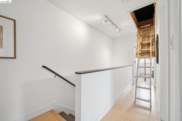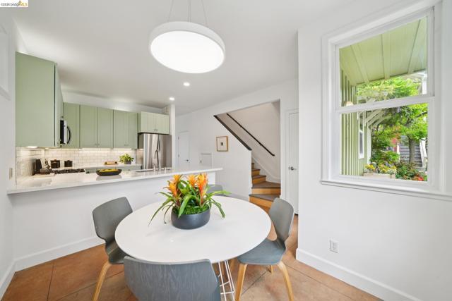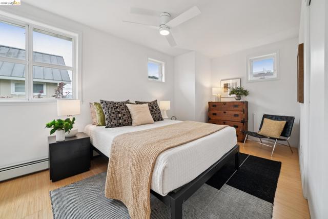 Discover enchanting and modern living at 480 42nd St. Through the gate and blooming bougainvillea, a winding path leads you past verdant community gardens on your way to Unit E. This intentional community of just six homes fosters connections through shared outdoor spaces designed for gatherings. Built in 2000, Unit E is a townhouse-style condo that seamlessly blends contemporary farm-style with comfort. High ceilings, recessed lighting, and stylish finished concrete floors equipped with radiant heating, new wool carpet up the stairs, and bamboo flr in the bdrms. On the 1st floor, the bright, eat-in kitchen is perfect for meals and homework alike. The space creates a peaceful oasis to relax after a long day. There is a half-bath on the ground floor btw the kitchen and the living room. Upstairs, you will find a primary suite with dual closets, high ceilings, and plenty of natural light. Two additional bedrooms and a full bath provide space for family or guests. A pull-down ladder reveals a generous attic space, inviting your expansion dreams*, or just an easy place to store your stuff. In this sunny garden oasis, it’s hard to believe you are just one block from the vibrant Temescal restaurant scene on Telegraph. Truly an urban oasis! *(Buyer to investigate)
