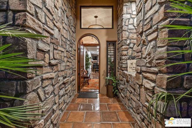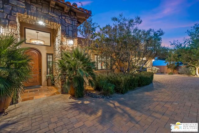 Bold design. Thoughtful execution. Prime South Palm Springs. A standout in both form and function, this 3,313 square foot high efficiency estate offers a rare blend of volume, efficiency, and refined design just blocks from Downtown. Located within Tahquitz River Estates on fee land you own it, the home unfolds with 10-foot ceilings, curated finishes, and a true indoor-outdoor flow that feels both elevated and effortless, anchored by a fully owned 48 panel solar system delivering meaningful energy efficiency and long-term savings. The gourmet kitchen with newly installed appliance suite is a showstopper, featuring a generous prep island, induction cooktop with pot filler, double ovens, built in refrigerator, and rich wood cabinetry, all anchored by a rare 1930s French chandelier casting a warm vintage glow over the dining space. The level of detail throughout is exceptional with heated floors in the primary bath, handcrafted Saltillo tile, solid core doors, fire sprinklers, designer lighting, and custom millwork throughout. Additional systems include dual tankless water heaters, whole home water filtration, central vacuum updated in 2024, whole house sound, and two newly installed HVAC systems. Outside, the private resort setting truly delivers with a glass tiled pool and spa featuring both heating and cooling functions, a rare and highly desirable feature in the desert that keeps the water refreshingly comfortable even during the hottest months. Lush landscaping draws inspiration from the Tuscan countryside with pomegranate and mature olive trees, all enhanced by commercial grade evening lighting. Entertaining comes naturally with a custom pizza oven, built in BBQ, fire pit, and outdoor shower creating an unforgettable setting under the desert sky. Even the garage has been thoughtfully upgraded with epoxy flooring, mini split climate control, overhead storage, and custom cabinetry. All of this just moments from the best of Palm Springs dining, shopping, hiking, and golf, delivering a standout take on the desert good life.