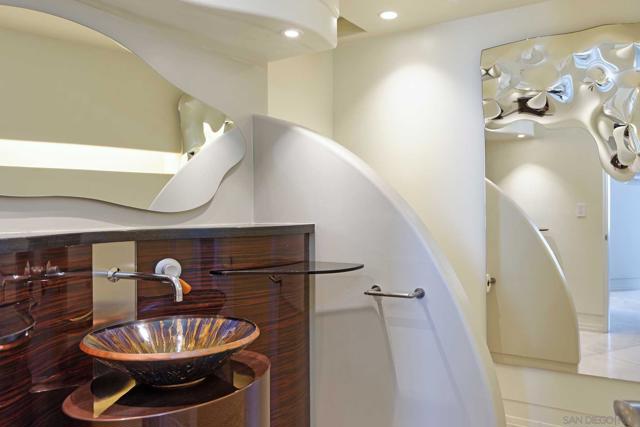 PHENOMENAL UNOBSTRUCTABLE PANORAMIC VIEWS AND ARTFUL ARCHITECTURE, echoing the natural curves of the coastline on the coveted "green side" of La Jolla's Country Club neighborhood, offer a unique and peaceful luxury lifestyle in this breathtaking showplace. Created with boundless imagination and creativity and finest structural and design resources--and priced far below replacement cost-- this home is designed to maximize immersion into the experience of indoor-outdoor enjoyment of its spectacular site. Views sweeping from sparkling city lights and snow-capped mountains to the rugged sunlit cliffs of the North Shore, La Jolla Shores' Beach and Village, La Jolla Beach & Tennis Club, sunsets, stretching to picturesque La Jolla Cove, are enjoyed from almost every living area, and recent renovations ensure every comfort and convenience have been addressed with extreme attention to quality. With Hillside Drive largely built-out with magnificent residences, the owners of this home will also enjoy precious serenity unbothered by the constant construction afflicting other upscale areas of town. Incomparable value, incomparable living, and a dramatic, gracious welcome for entertaining friends and family...