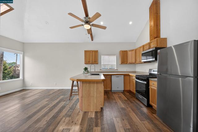 Charming, updated home with ADU! Located in the highly desirable St. Vincent’s Hill Historic District, this home beautifully blends character with modern upgrades. The main house features stunning flooring, vaulted ceilings, skylights, and recessed lighting throughout. The spacious, modern kitchen is equipped with newer appliances, including a gas cooktop, while recent upgrades such as a tankless water heater and updated heating system provide added comfort and efficiency. Washer, dryer, and refrigerator are all included. Additional highlights include dual-pane windows, new sliding doors, updated fencing, and a private deck courtyard—perfect for relaxing or entertaining. The cozy studio ADU offers its own private entrance and a light-filled open layout with skylights and wood flooring. A charming sleeping loft adds extra versatility, and the spacious bathroom features a soaking Jacuzzi tub along with a separate shower for a spa-like experience. Ideally located within walking distance to the Vallejo Yacht Club, nearby parks, the marina, and the ferry terminal for easy commute to San Francisco. Wide driveways provide ample, convenient parking.