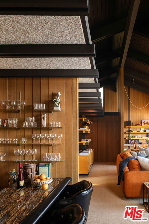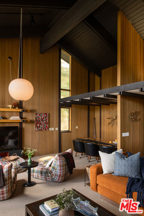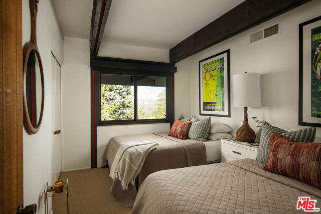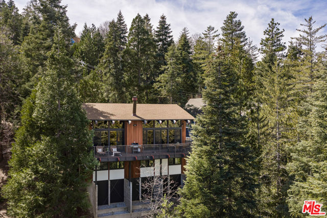 Step back in time at 287 Grizzly Road, a 1967 mid-century modern residenceoriginally designed by AIA architect R. Neil Manos and known as the "Mountain Cabin"with lake views and a wealth of original features. Vertical cedar siding anchors the captivating exterior of the home amid towering pines. Inside, the main floor boasts vaulted ceilings with exposed beams and eye-catching, unique architectural elements, floor-to-ceiling windows, and sweeping lake and mountain views. A wood-paneled living area with a wood-burning fireplace opens to a formal dining space adorned by two notable Herman Miller Nelson pendant lights, original built-in shelving reflecting the home's signature red stripecarried from the front of the house throughout the interior and out onto the decksand a lake view, adjacent to an updated galley kitchen. Expect authentic mid-century details, including the three original Herman Miller light fixtures, an open-back built-in, and a sunken wet bar, an unexpected detail for added entertainment. Sliding doors flank the fireplace, opening to a spacious deck for lounging, dining, and embracing the unparalleled lake and mountain views. The main floor is complete with a powder room adorned with original mid-century modern sconces. Down the original pebble-stone and concrete stairs are two full baths and three ample-sized bedrooms, one serving as a recreation and bunk room. Each bedroom offers tree views and exposed wood beams. One bath remains a 1960s time capsule with original tile and wood paneling. This home is a true collectors piece. Other amenities include a two-car garage and an oversized parcel with outdoor living potential. Ideally located with close proximity to North Bay, Blue Jay, the Lake Arrowhead Country Club, and nearby hiking trails. Lake Rights are included with the purchase of this home. Prime North Bay dock available for additional price.