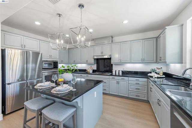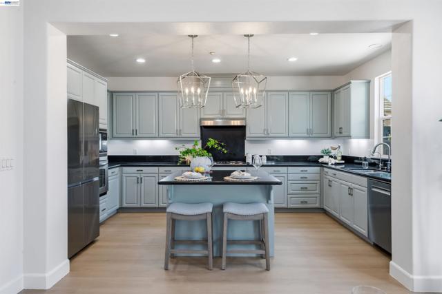 East-facing, Corner home on a Cul-de-Sac, Fully & Extravagantly Renovated! Ideal Location: Right Across from Fallon Middle & a short walk to John Green Elementary & Emerald High; all TOP Rated Schools in East Dublin! 2-story home with a 3rd story Lavish Loft/5th bedroom with a Full bathroom as a bonus! STUNNING Kitchen has Elegant Countertops, Lavish Centerpiece Island w/ Gorgeous Pendant Lights, Modern Cabinets, Graceful Backsplash & S/S appliances. The Sizable Family Room is ideal for family & friends. Separate Living Room is perfect for a Formal/Second Seating! Glass door leads to a Spacious, Low Maintenance backyard to enjoy outdoors year-round! Separate Living Room is ideal space for Formal Guests. Second Floor features Extravagant Primary bedroom suite offers a Spa Style bathroom with a walk-in closet. The secondary bedrooms on the second floor are Super Spacious as well! 3rd story offers a Multipurpose Room with Full bathroom; use it as a 5th bedroom, Lavish Loft, Office, Media or a Game room. Home is Loaded w/ Upgrades: Renovated Kitchen, New Premium Flooring throughout, Chic Light Fixtures & Recess Lights throughout, New Custom Two-Tone Paint! Ideal Location, Layout, & Chic Interiors! Walk to All schools, shopping, BART, & Fwys are close by as well! Do Not Miss this one!