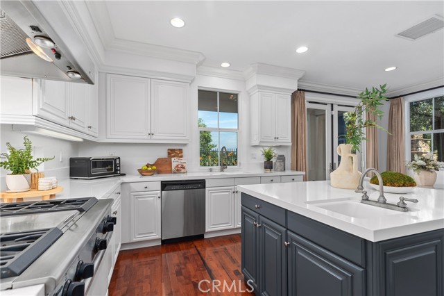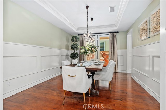 Nestled in the highly sought-after Quail Hill community awaits this sophisticated residence in Chantilly tract , offering panoramic city lights and hillside views. Recently refreshed 2-story home on a quiet cul-de-sac, ideally positioned on a premium 5400 ft lot with city lights and hillside views. Freshly updated with new interior paint, brand new carpet upstairs, and rich real wood flooring throughout the main level. Bright, open floor plan with high ceilings, oversized windows, fireplace, and French doors for seamless indoor-outdoor living. Newly renovated kitchen features a large island, upgraded finishes and opens to the backyard. Enjoy the separate formal dining room with French doors to an outdoor fountain. Popular layout includes 4 bedrooms, 4 full baths, 3641 SF ft, plus a main-floor in-law suite with full bath and separate entrance—ideal for guests or multi-generational living. Upstairs bonus room with built-in bar, pool table, and sweeping city lights views—perfect for entertaining. Luxurious primary suite with backyard and city lights views and oversized master closet with spa inspired master bath. Resort-style backyard with multiple seating areas and panoramic views—even Disneyland fireworks in the distance. Located in award-winning Irvine Unified, including University High School. Enjoy Quail Hill’s trails, parks, and coastal-close lifestyle with easy access to major freeways, toll roads, John Wayne Airport, Irvine Spectrum, and Laguna Beach. A rare opportunity combining views, privacy, and prime location.